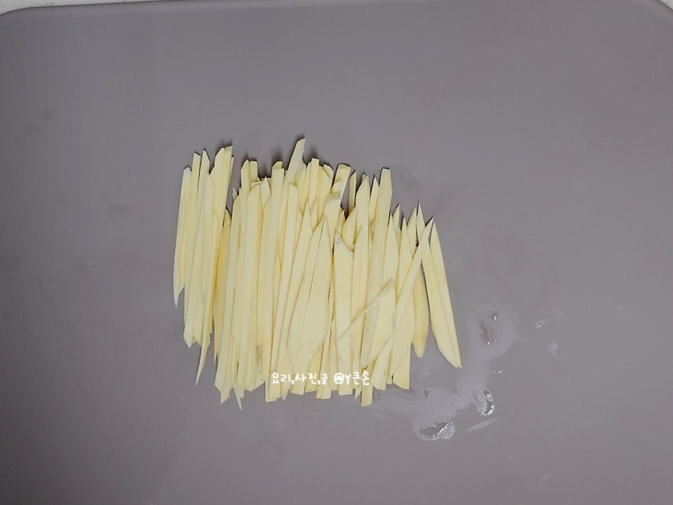 너무 얇으면 탈 수 있고 또 너무 두꺼우면 속이 안 익으니 균일하게 써는 게 중요해요.