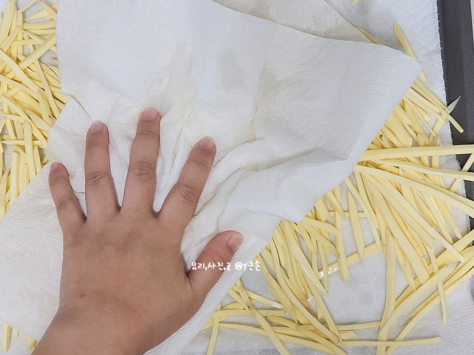 전분이 빠져야 더욱 바삭하고 덜 기름져요.