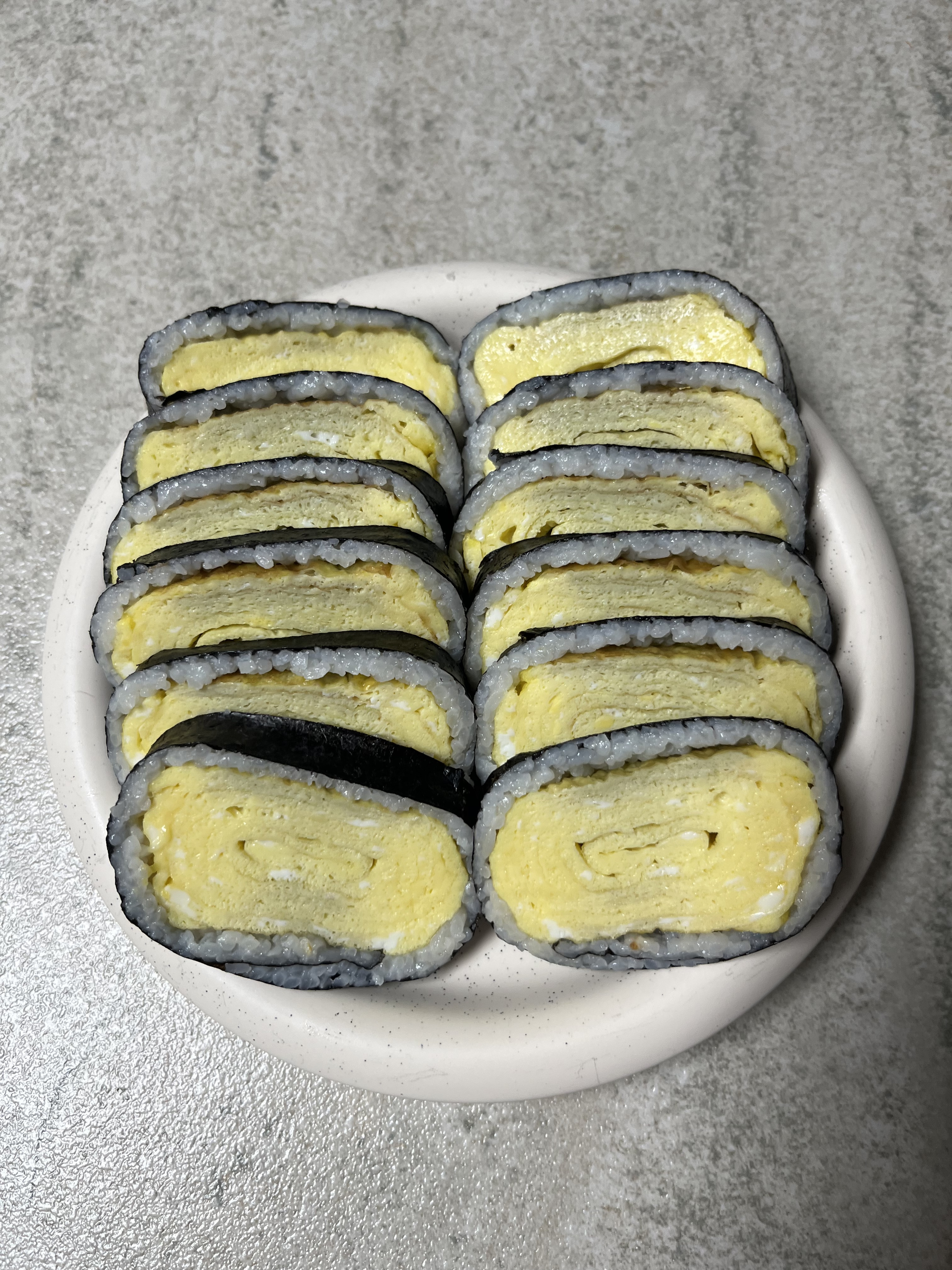 그러다가 어느날 김밥이 너무 먹고싶은거에요! 근데 재료는 김이랑 계란밖에 없고...나가기는 너무 귀찮아서