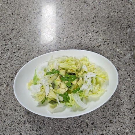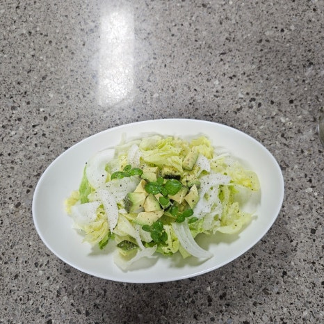 양상추 양파 아보카도 바질 잎 등 좋아하는 재료를 넣고 소금 후추 뿌려주시고