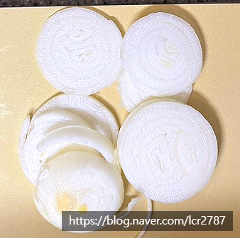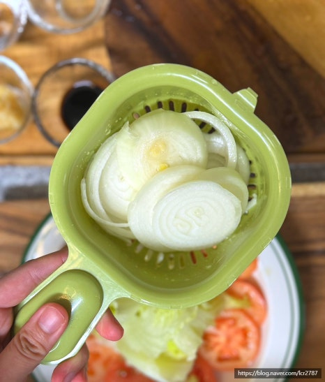 양파는 썰어서 물에 담궈 매운맛을 제거해요.