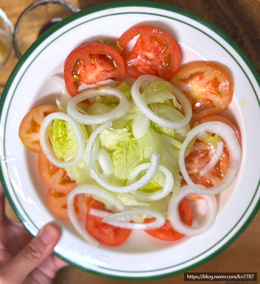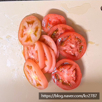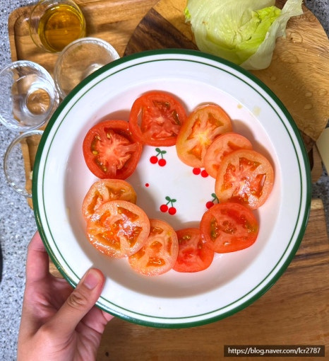 토마토는 깨끗하게 씻어 얇게 슬라이스하고, 양상추는 찬물에 담가 아삭함을 살린 뒤 물기를 꼭 제거해 주세요.