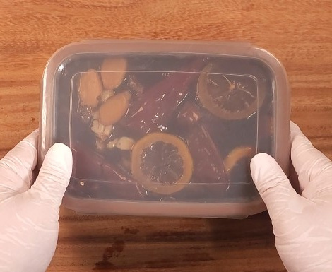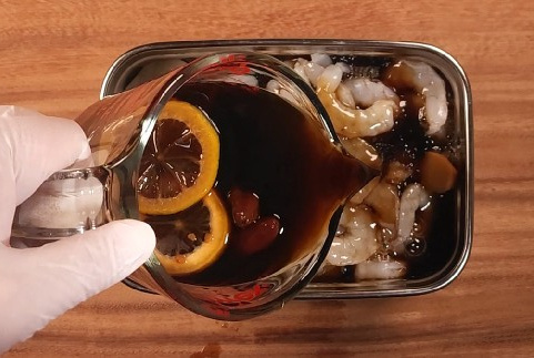 보관 꿀팁-새우가 간장에 완전히 잠긴 상태로 있어야 합니다. 밀폐용기 사용 시 색과 향이 오래 유지돼요