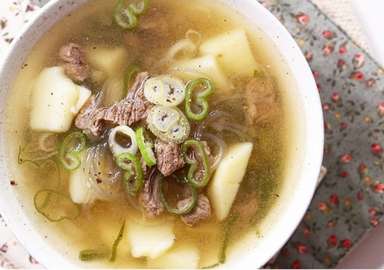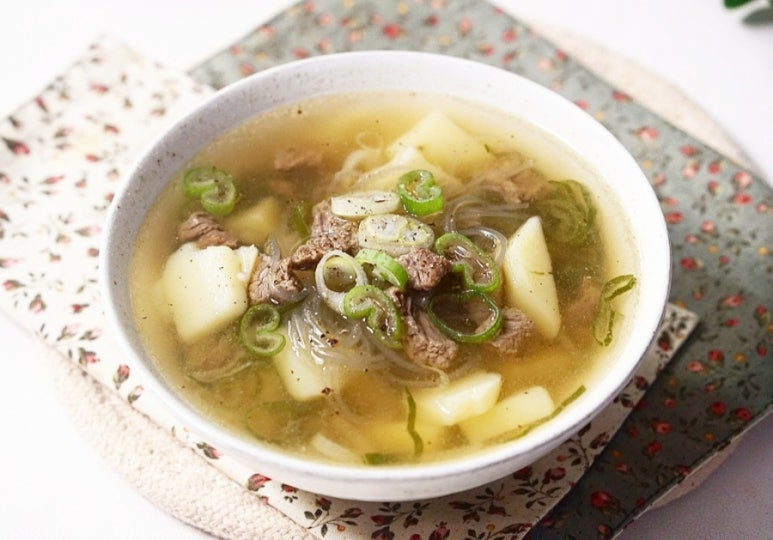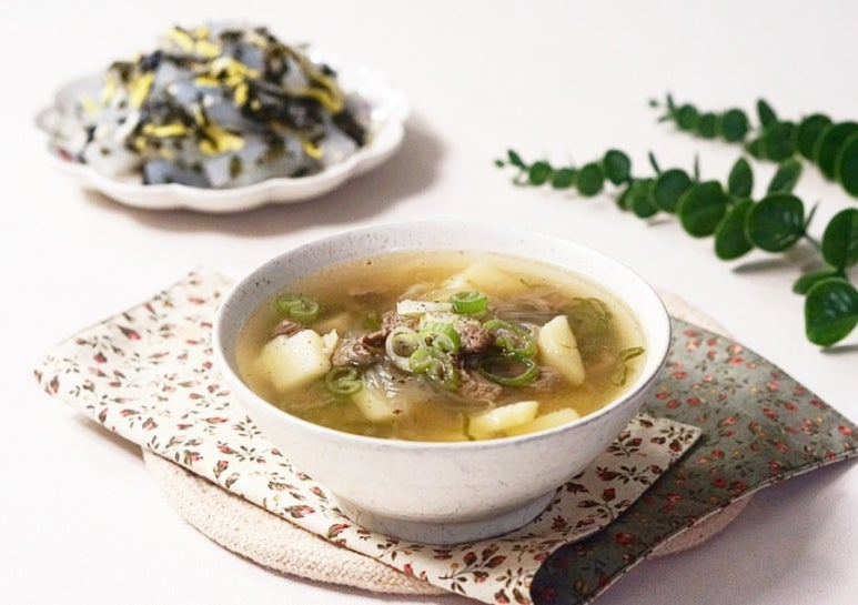 맑은 국물 요리를 좋아하는 분들이라면 한 번쯤 만들어 드시기에 좋은 소고기감자국 레시피입니다. 보통은 무를 넣어 끓이는 소고기무국이 대표적이지만 오늘은 무 대신 감자를 넣고 끓여 더욱 부드럽고 포근한 맛이 특징이에요. 감자는 무와 달리 특유의 포슬함이 있어 국물이 은은하게 걸쭉해지고 고기의 진한 맛과 잘 어우러져 든든한 한끼를 만들어 줍니다. 오늘은 무를 대신해 감자를 듬뿍 넣어 끓여내는 맑은 소고기감자국 레시피 소개해 드릴게요!