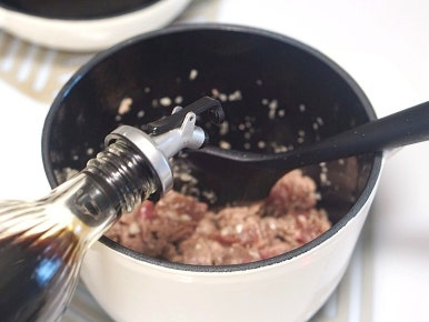 마늘의 매운 맛이 날라가고 고소한 향이 올라오기 시작하면 소고기를 넣고 중불에서 1~2분, 국간장 1T를 넣어 고기의 겉면이 익을만큼만 볶아주세요.