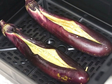 가지 속에 올리브오일을 1T씩 발라주고 소금 간을 살짝 해 에어프라이어에서 180도 15분 구워주세요.