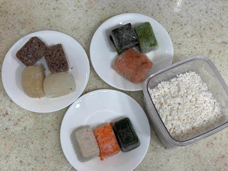 후기이유식 119일 소고기콩나물무진밥 닭고기근대당근진밥 연어비타민브로콜리진밥