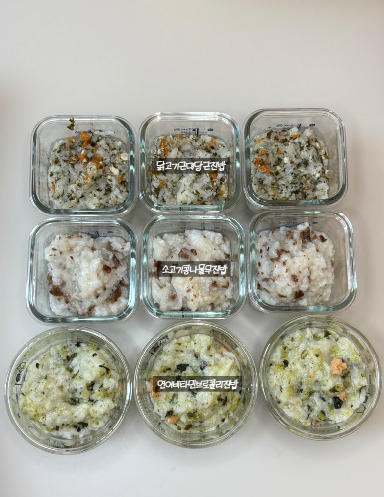 오늘은 소고기콩나물무진밥, 닭고기근대당근진밥, 연어비타민브로콜리진밥에 대해