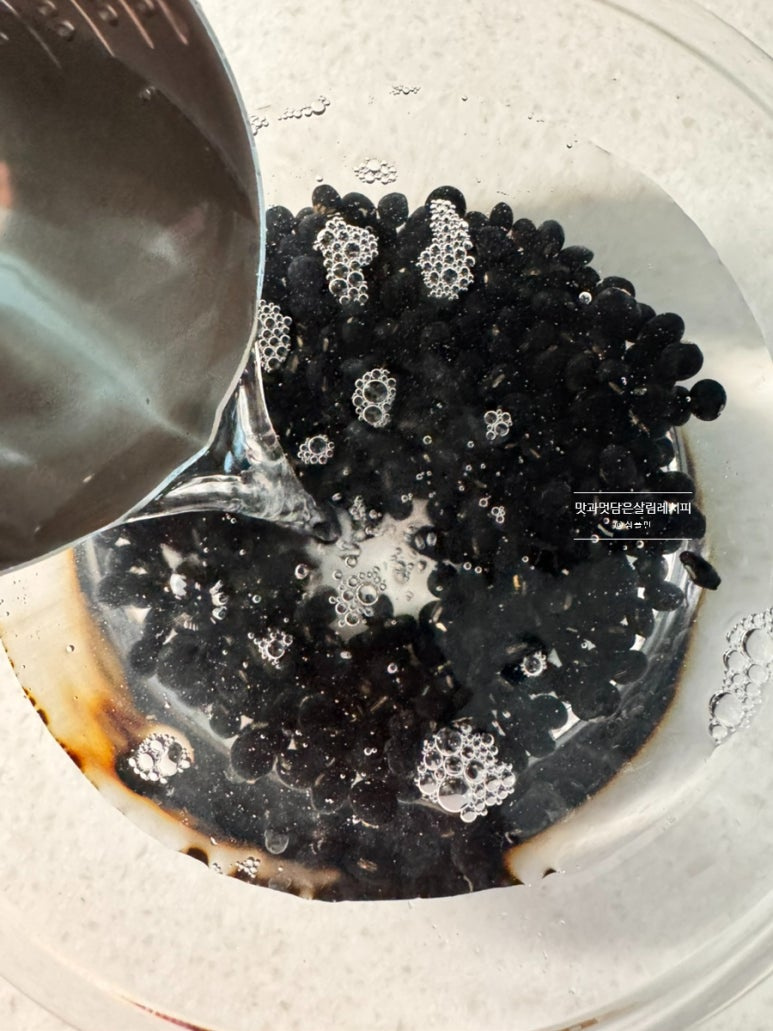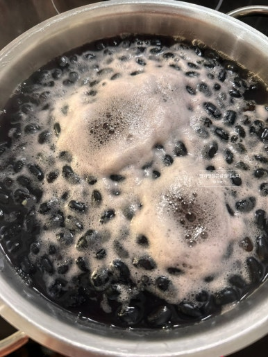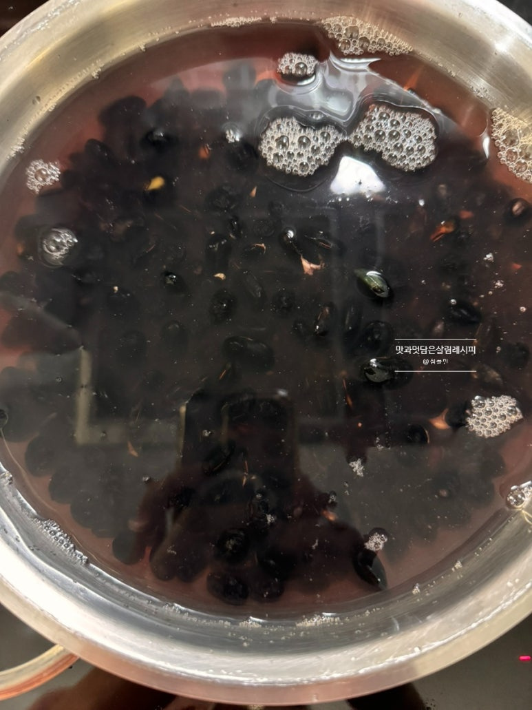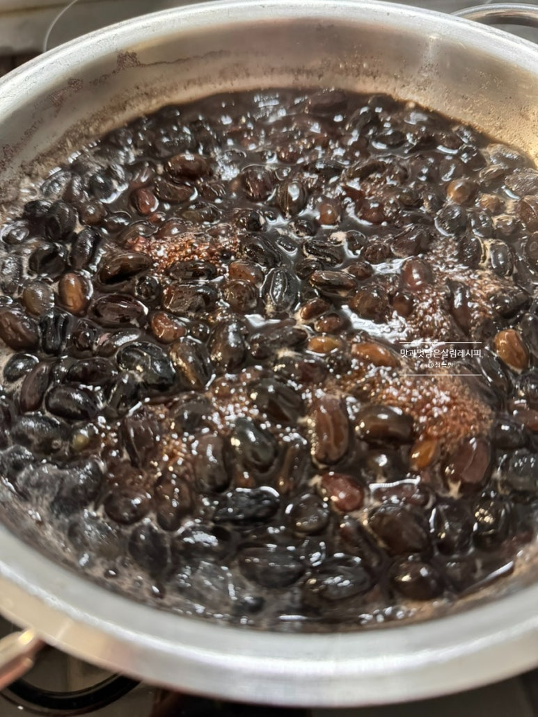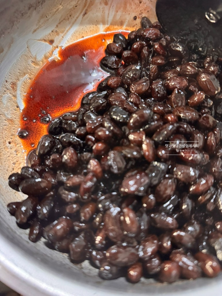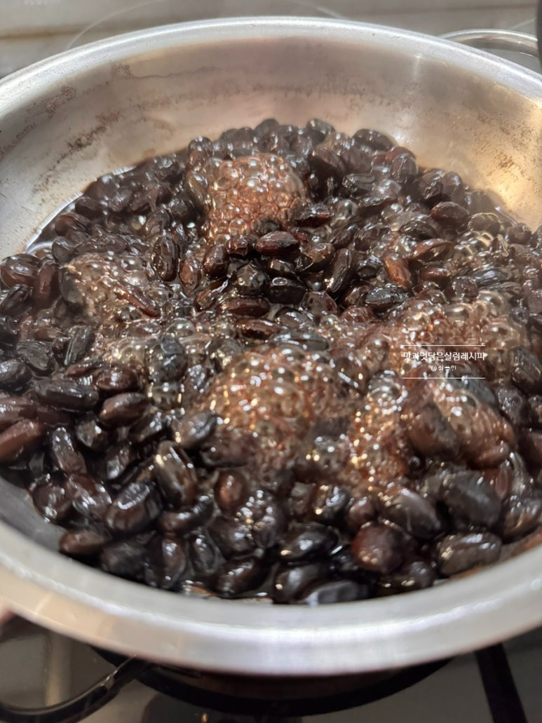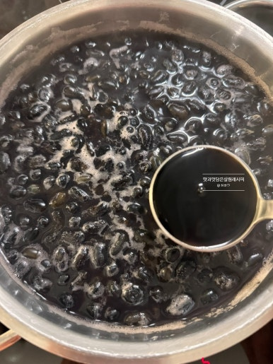 이 시간 정도 지나면 양념국물이 콩 안에 스며들면서 맛있게 졸여집니다.