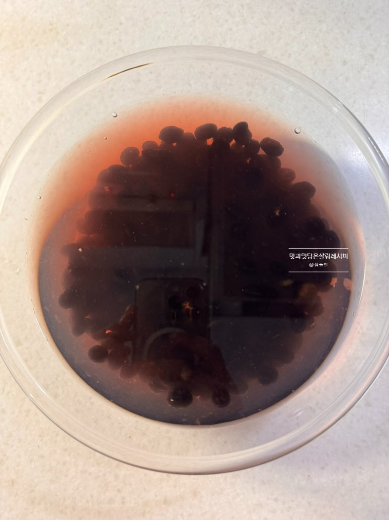 5시간 정도 지나면 이렇게 진한 적갈색으로 물까지 건강한 비주얼이 되는데요. 요즘은 선선해져서 괜찮지만 더울 땐 냉장고에 두고 불려줍니다.