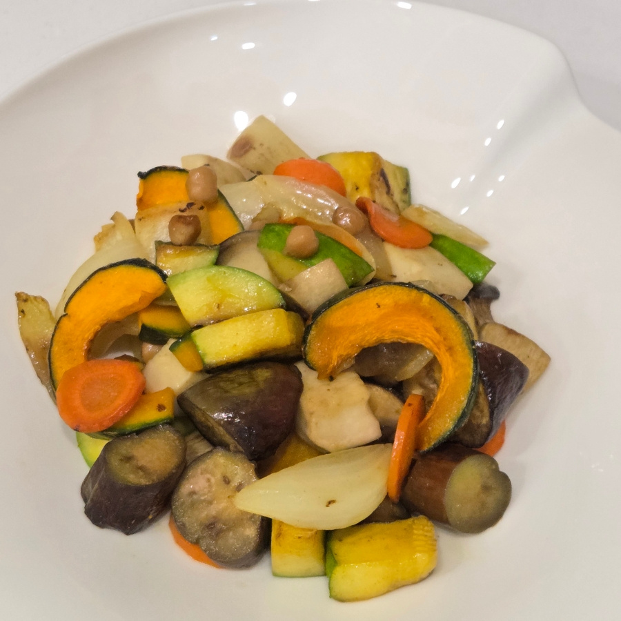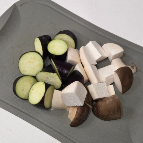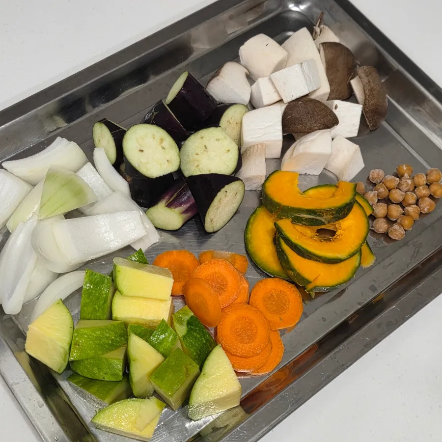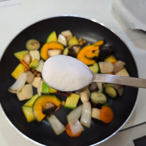 (가지, 애호박, 버섯, 양파는 깍두기 크기 정도로 자르고 단호박이랑 당근은 늦게 익기 때문에 얇게 썰어주었어요 양파는 안에 심쪽이 들어가면 예뻐 보이지 않을 것 같아서 분리해서 다른데 사용했습니다!)
