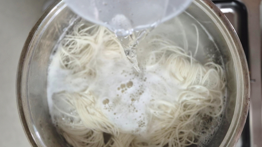 *중간에 찬물을 넣으면 면발이 불지 않고 쫄깃하고 더 맛있어요