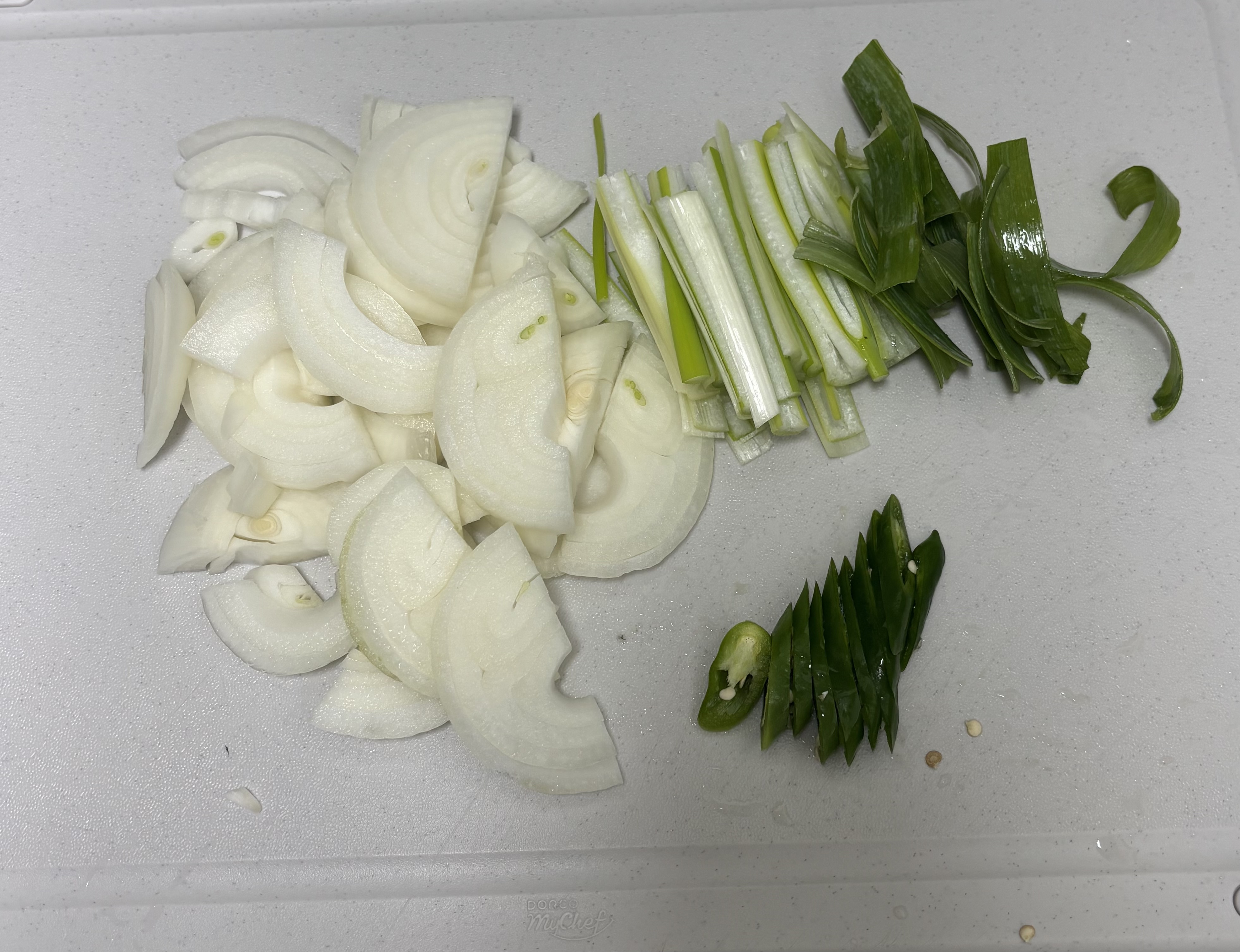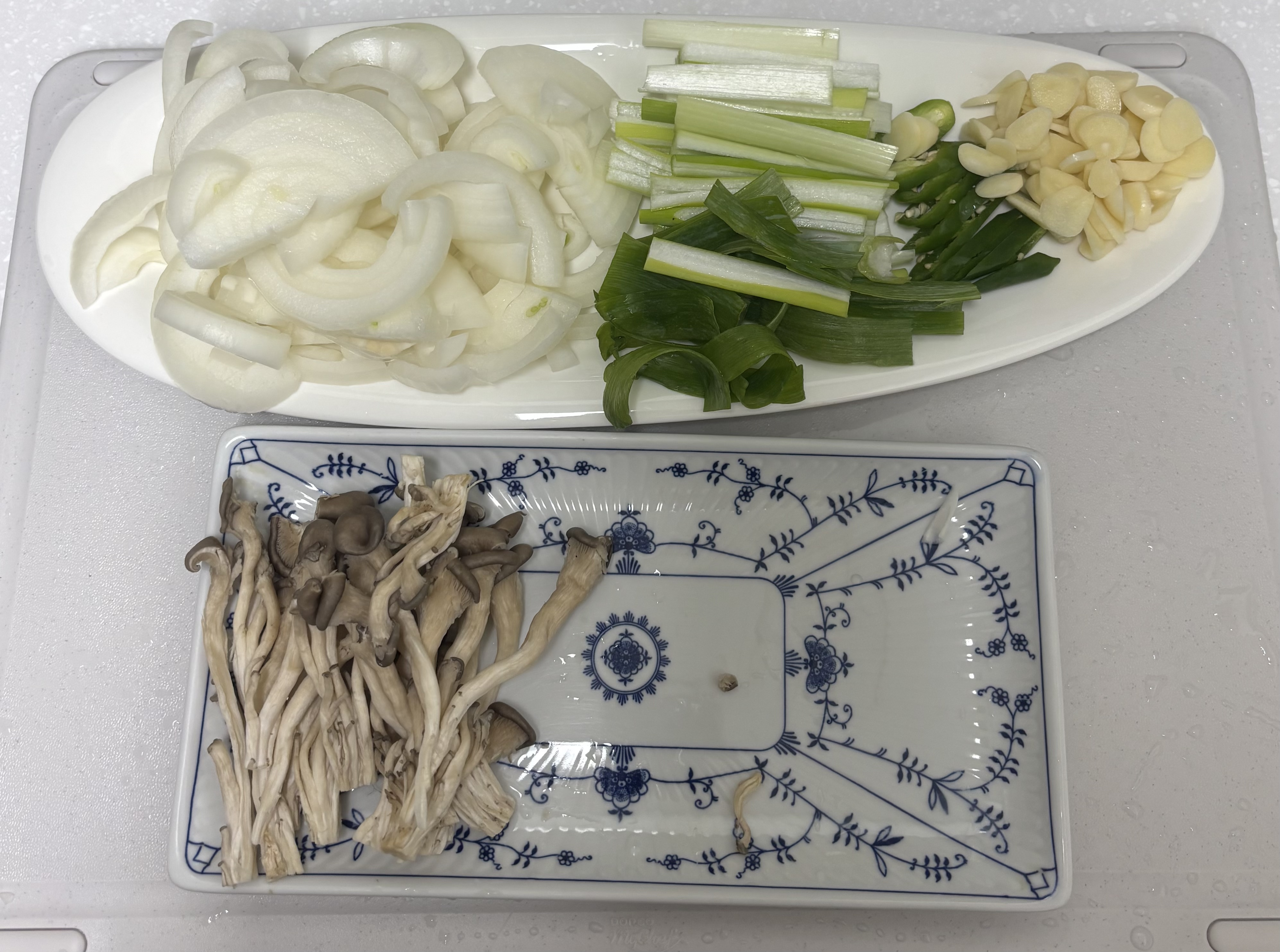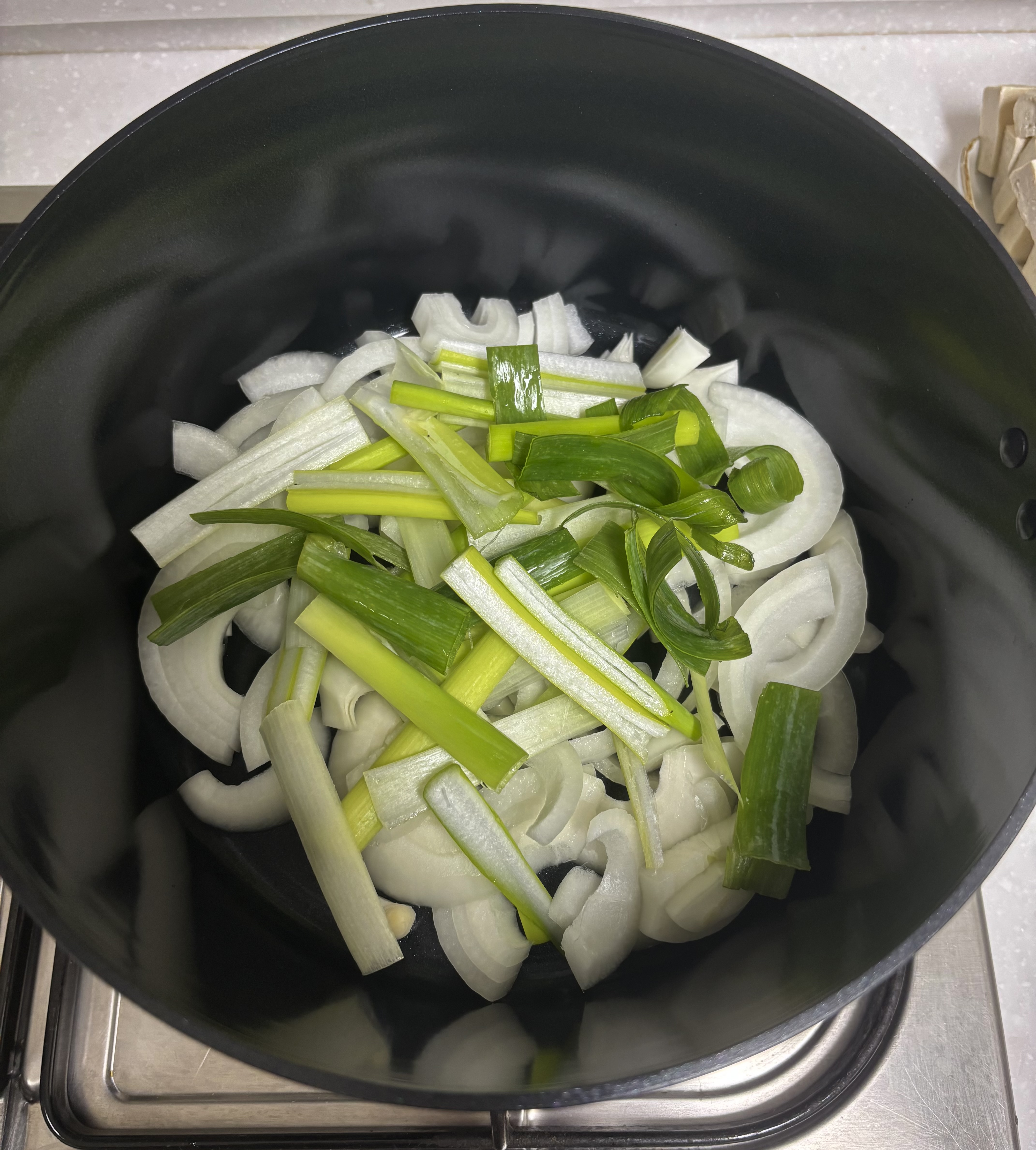 냄비 바닥에 양파와 대파를 골고루 깔아주세요.
