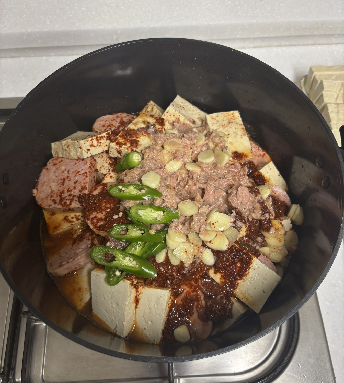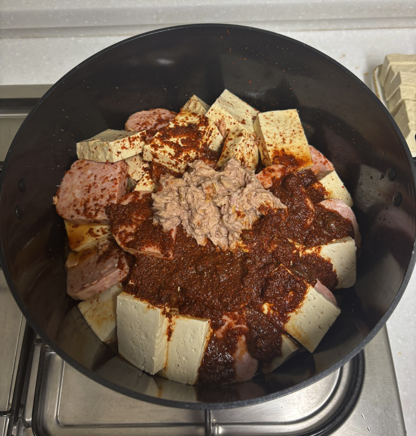 그 위에 두부, 리챔, 두부, 리챔 순으로