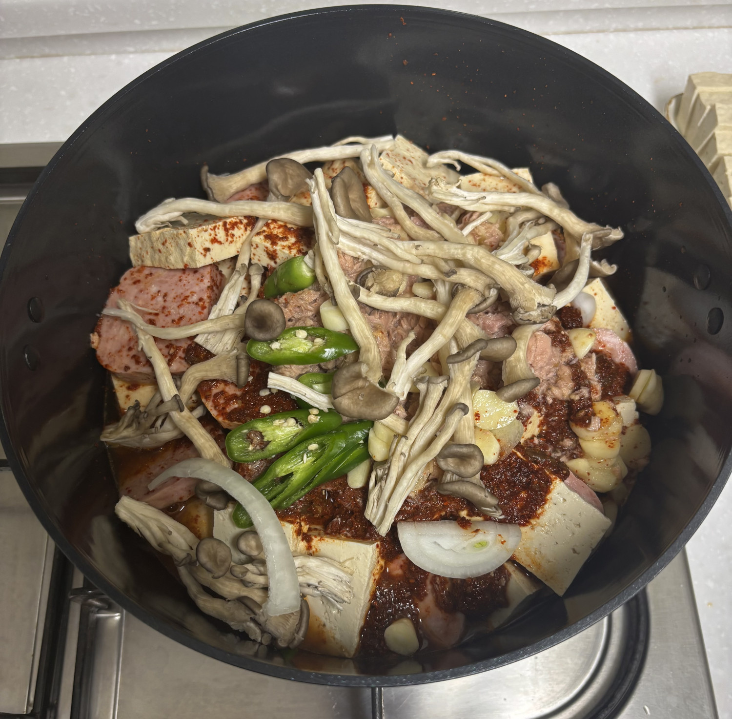 마지막으로 청양고추, 마늘, 느타리버섯을 넣고