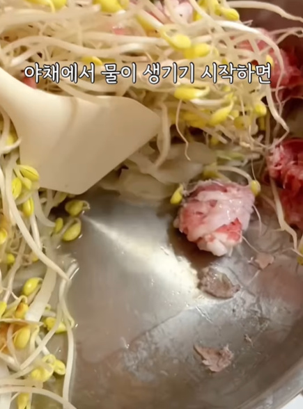 물기가 나올때까지 볶지 않고 그대로 가열해요.