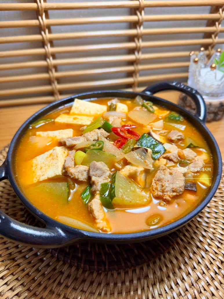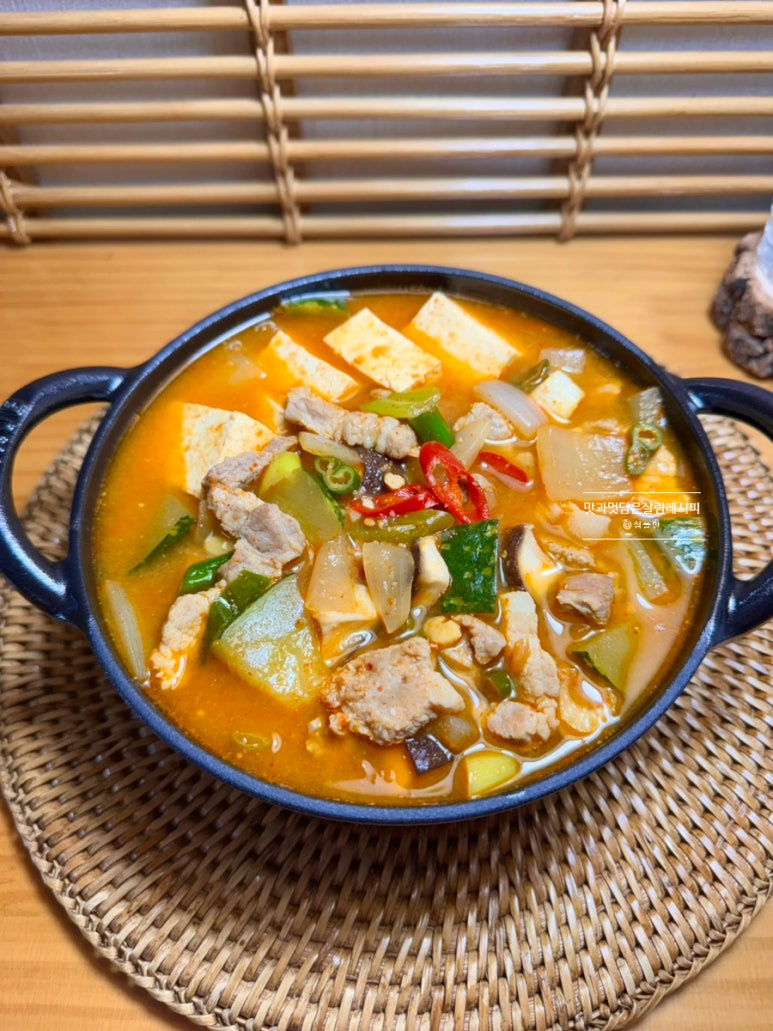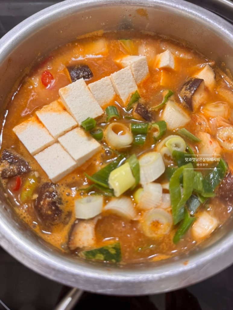 건더기 듬뿍 넣어 구수하고 진한 국물에 떠먹으니 두부와 야채 모두 맛있게 섭취할 수 있어요. 밥에 쓱쓱 올려 비벼 먹기에도 좋고요. 쌀쌀한 날씨 시작되는 이 계절이 자주 만들어 먹을 단골 메뉴랍니다.