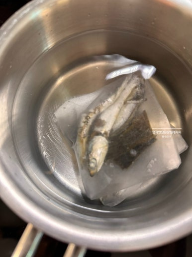코인 한 알 넣고 간단하게 만들어도 좋고요. 오늘은 직접 멸치다시다팩을 활용해 우려주었어요. 끓이는 과정에서 증발되는 것을 감안하여 520ml 정도의 물에 육수팩을 넣고 10분 정도 보글보글 끓여주었습니다.
