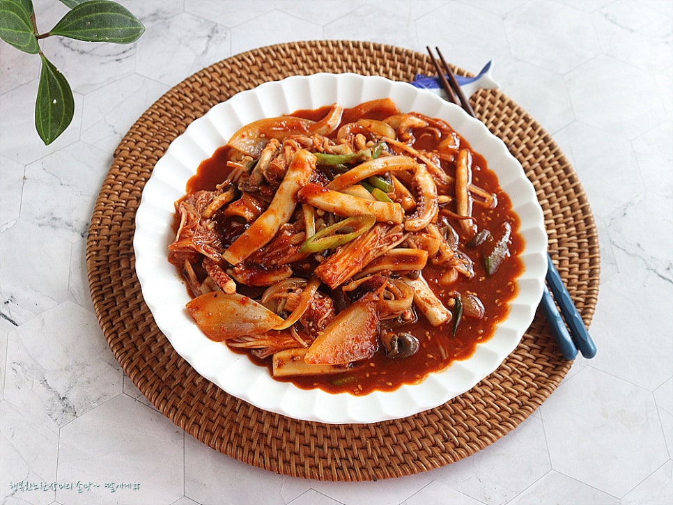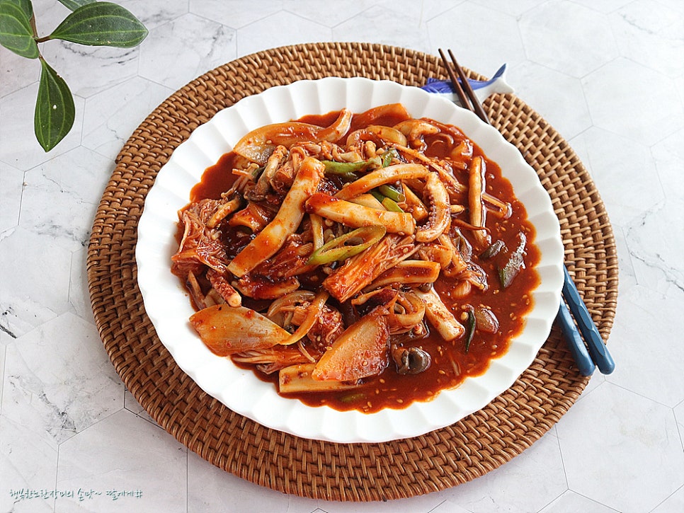양파,대파,버섯등이 더 맛난 오징어볶음