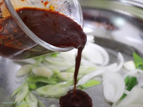 고추가루1.5,고추장1, 간장1.5, 미림1,알룰루스1,생강가루 조금