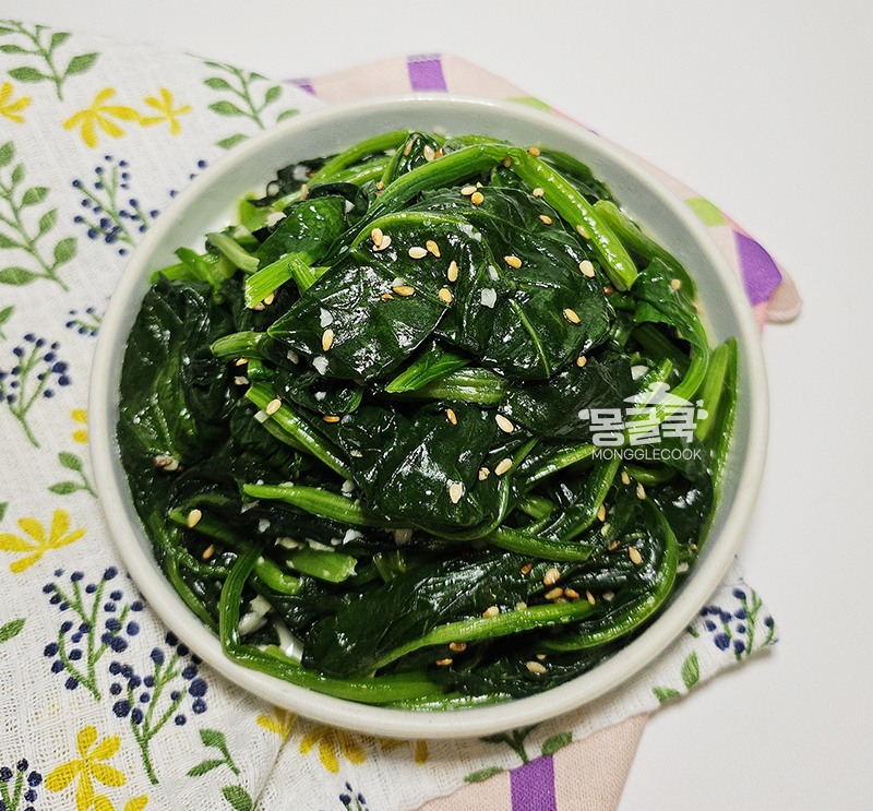 부드럽고 달달한 시금치의 맛을 그대로 살린 시금치볶음,
