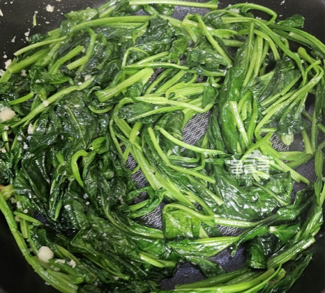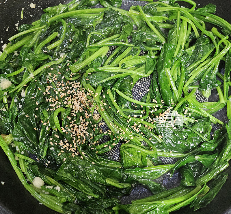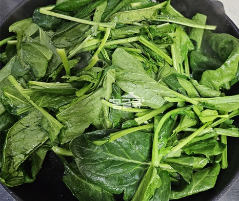 시금치가 숨이 죽기 시작하면 불을 중불로 낮춰주세요.