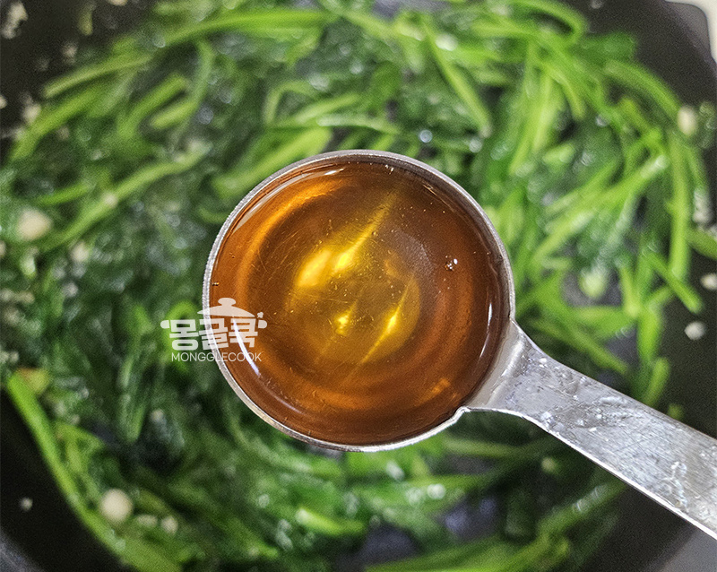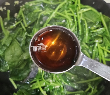시금치가 살짝 숨이 죽었을 때 액젓 1/2큰술을 넣고 간을 맞춰주세요.