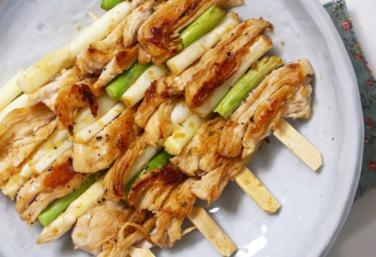 칼로리는 낮으면서 단백질은 충분히 챙길 수 있는 아스파라거스 닭가슴살. 요즘은 닭가슴살도 퍽퍽하지 않고 촉촉한 제품들이 많이 나와있어서 이렇게 꼬치로 만들어 먹어도 충분히 맛있더라구요 '◡' 매일 같은 닭가슴살 요리에 질린 분들을 위한 새로운 레시피, 오늘은 닭 꼬치구이 만드는 법 소개해 드릴게요!