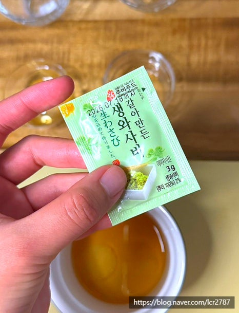 식초 1스푼, 참기름 1스푼, 고추냉이 반 스푼
