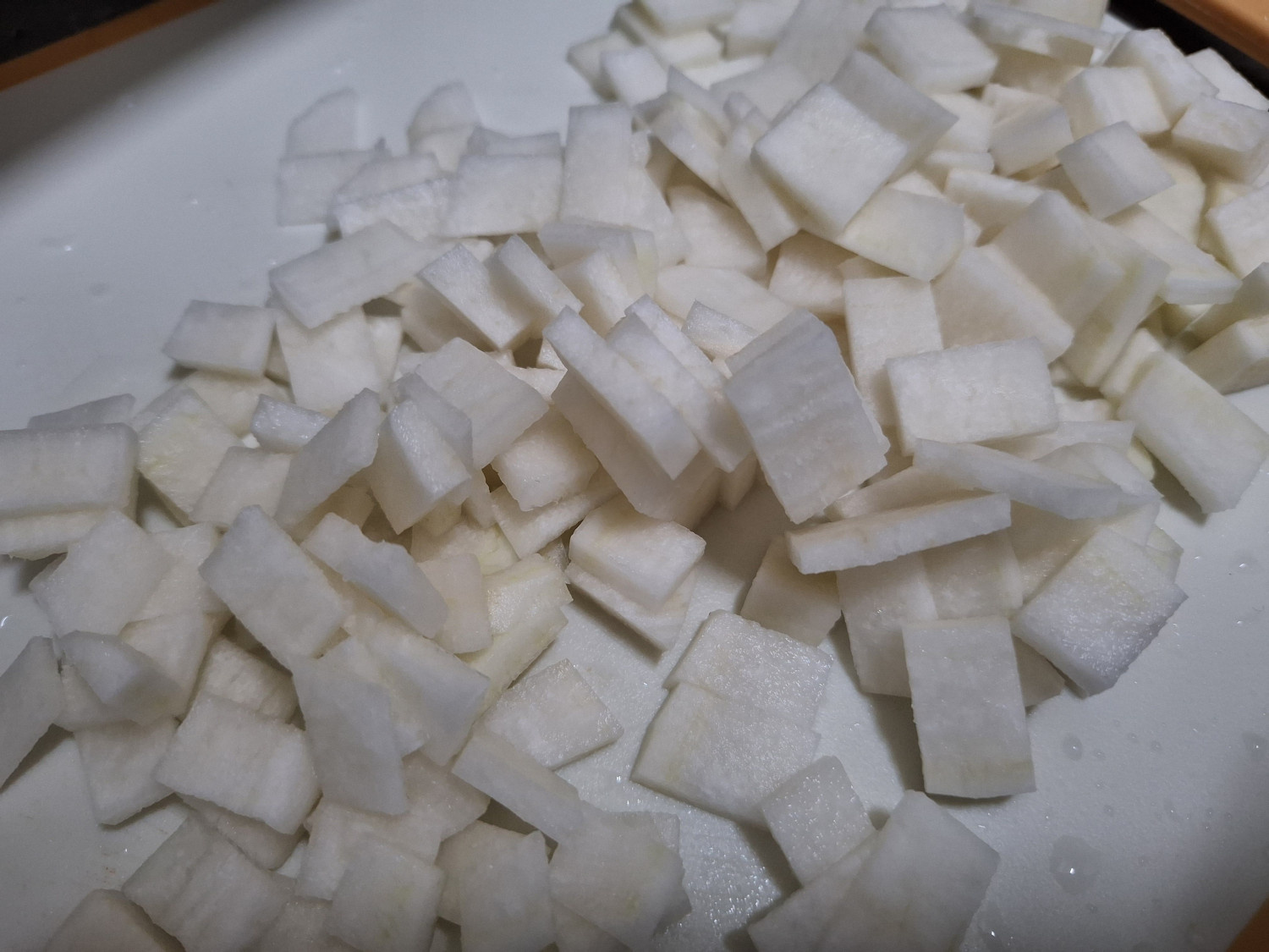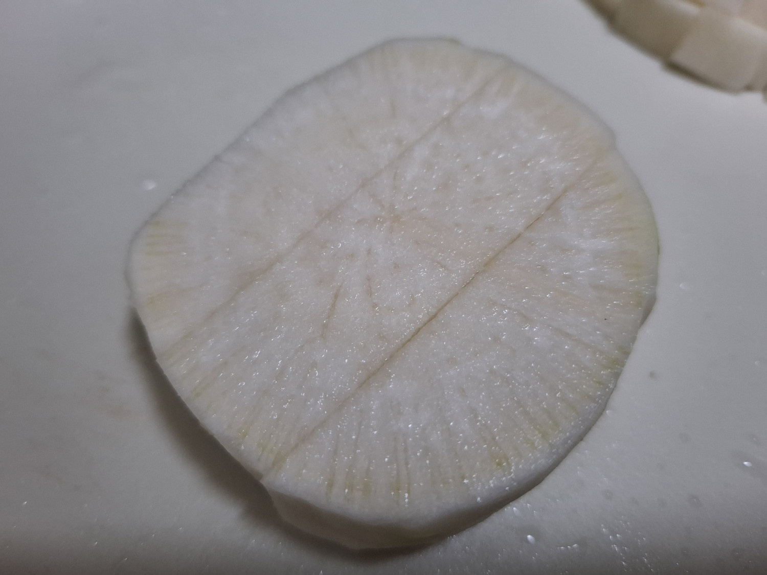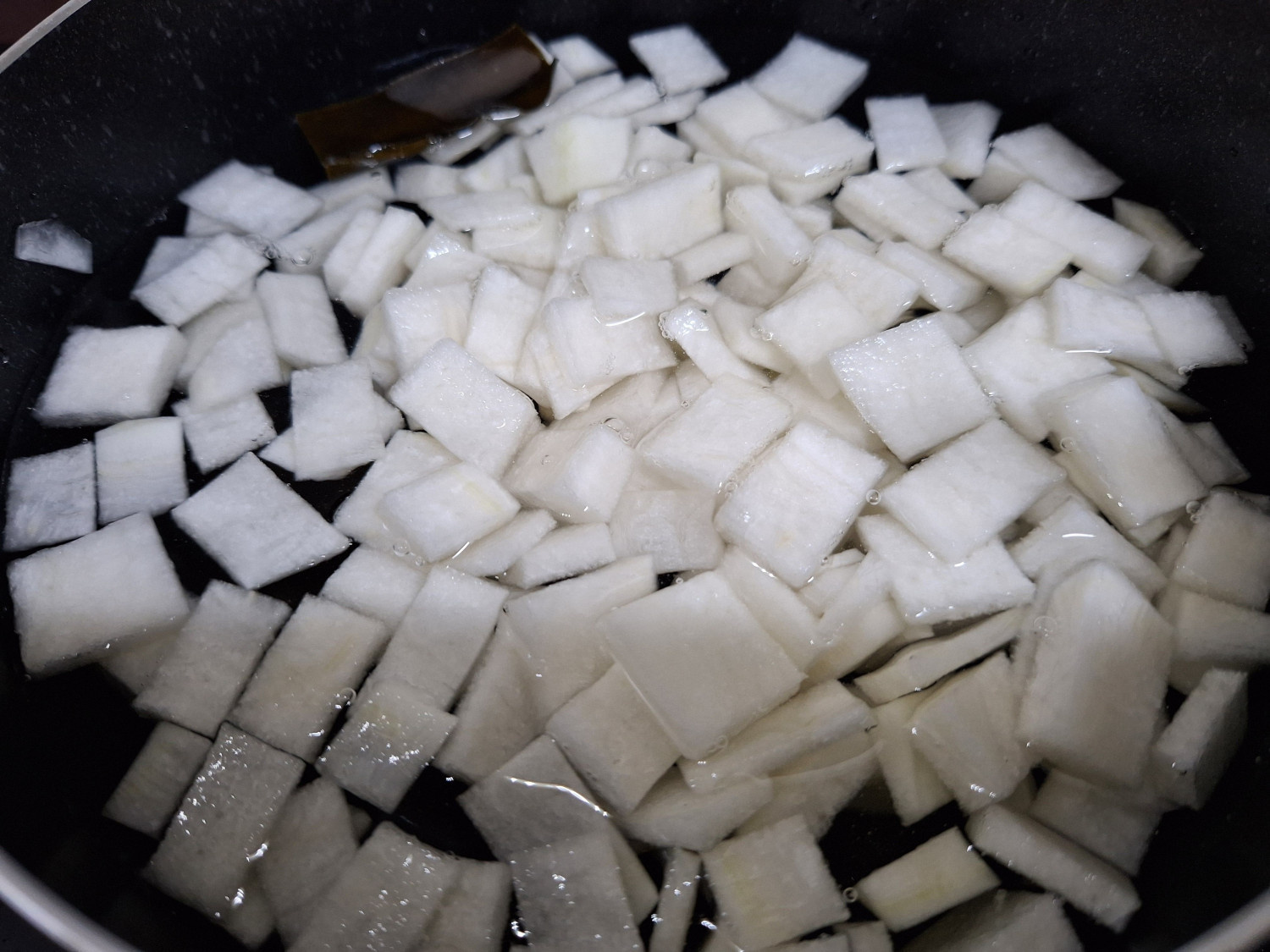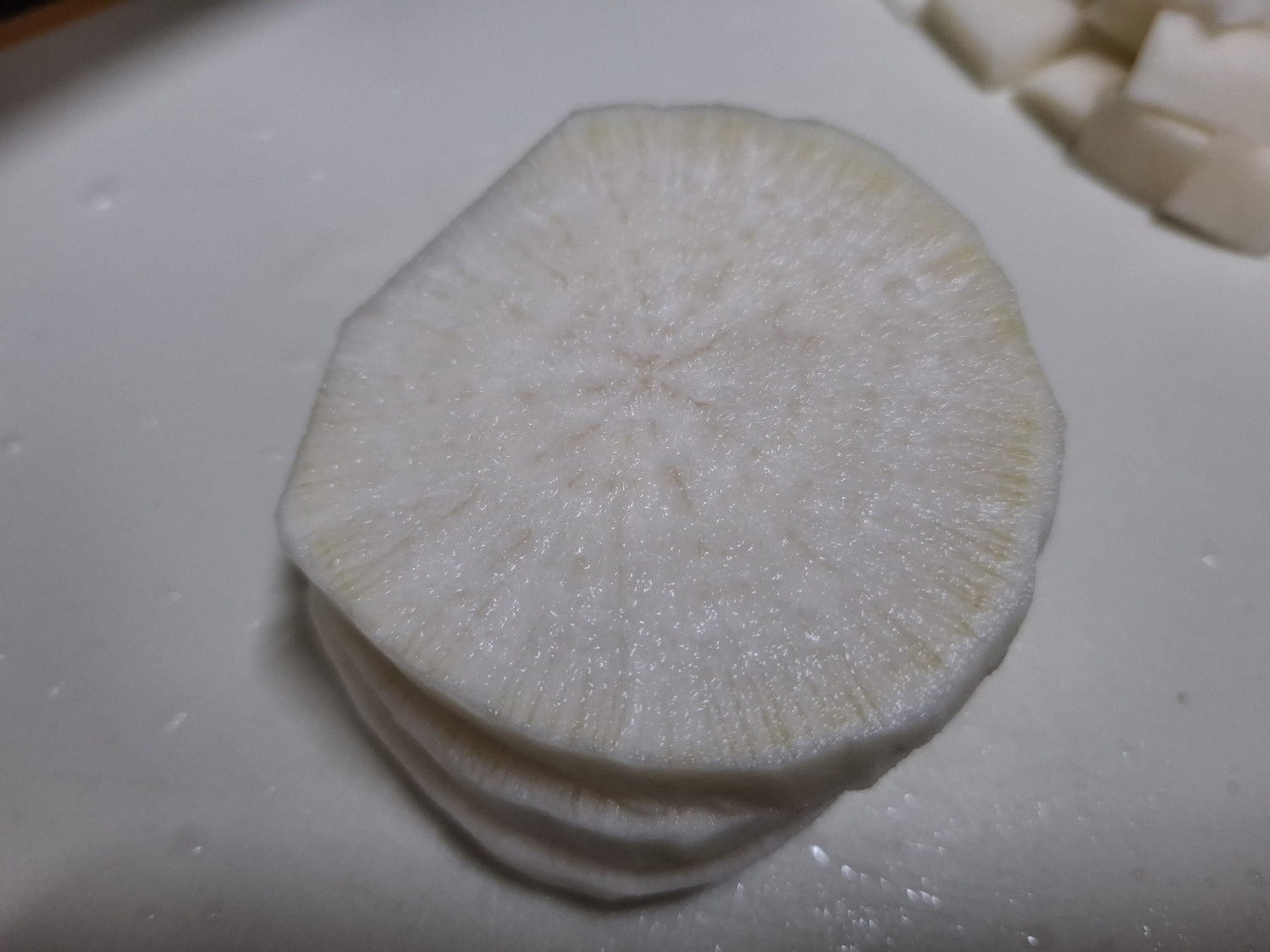 그리고 바로 썰어둔 무도 넣어줍니다.
