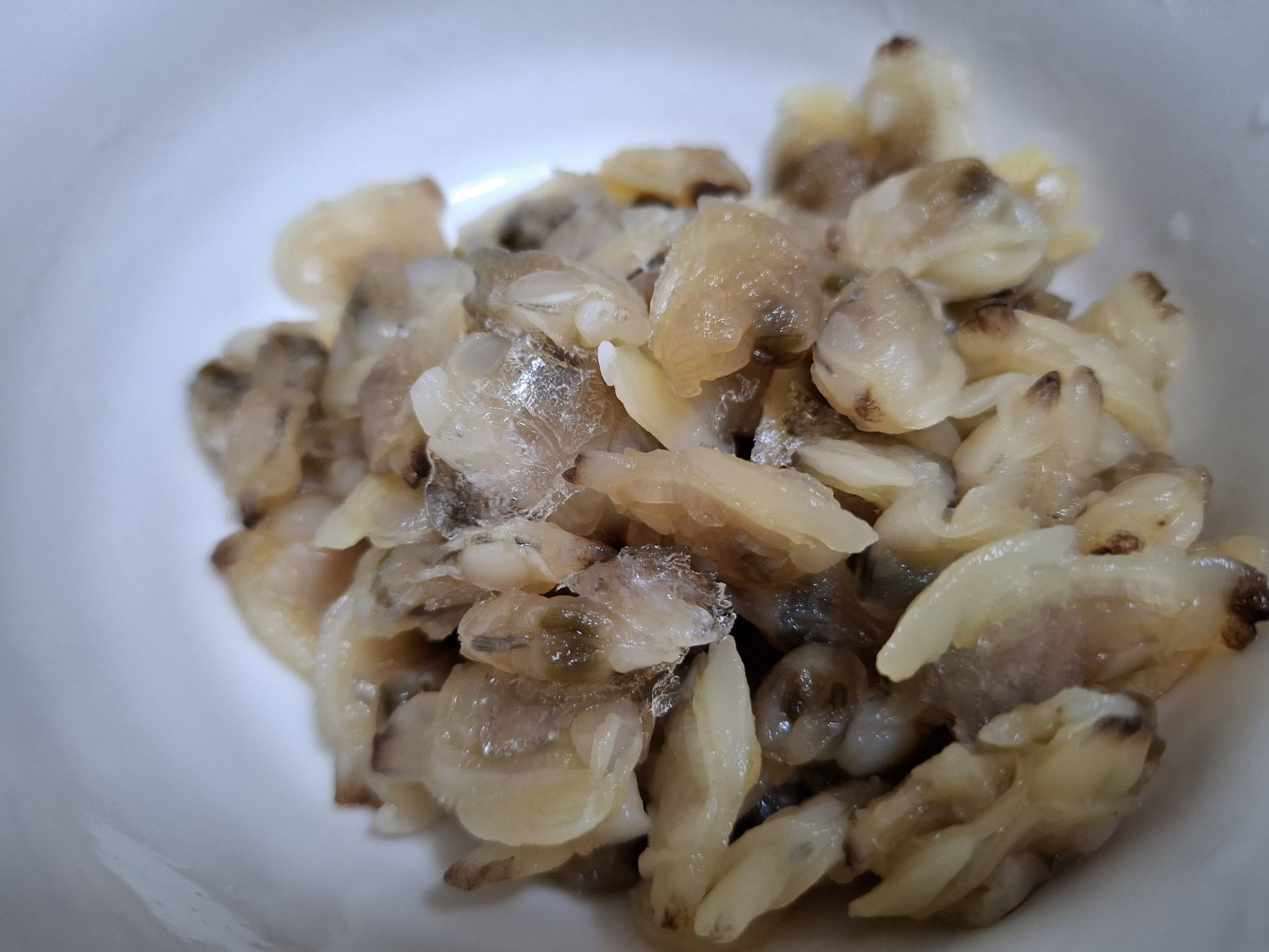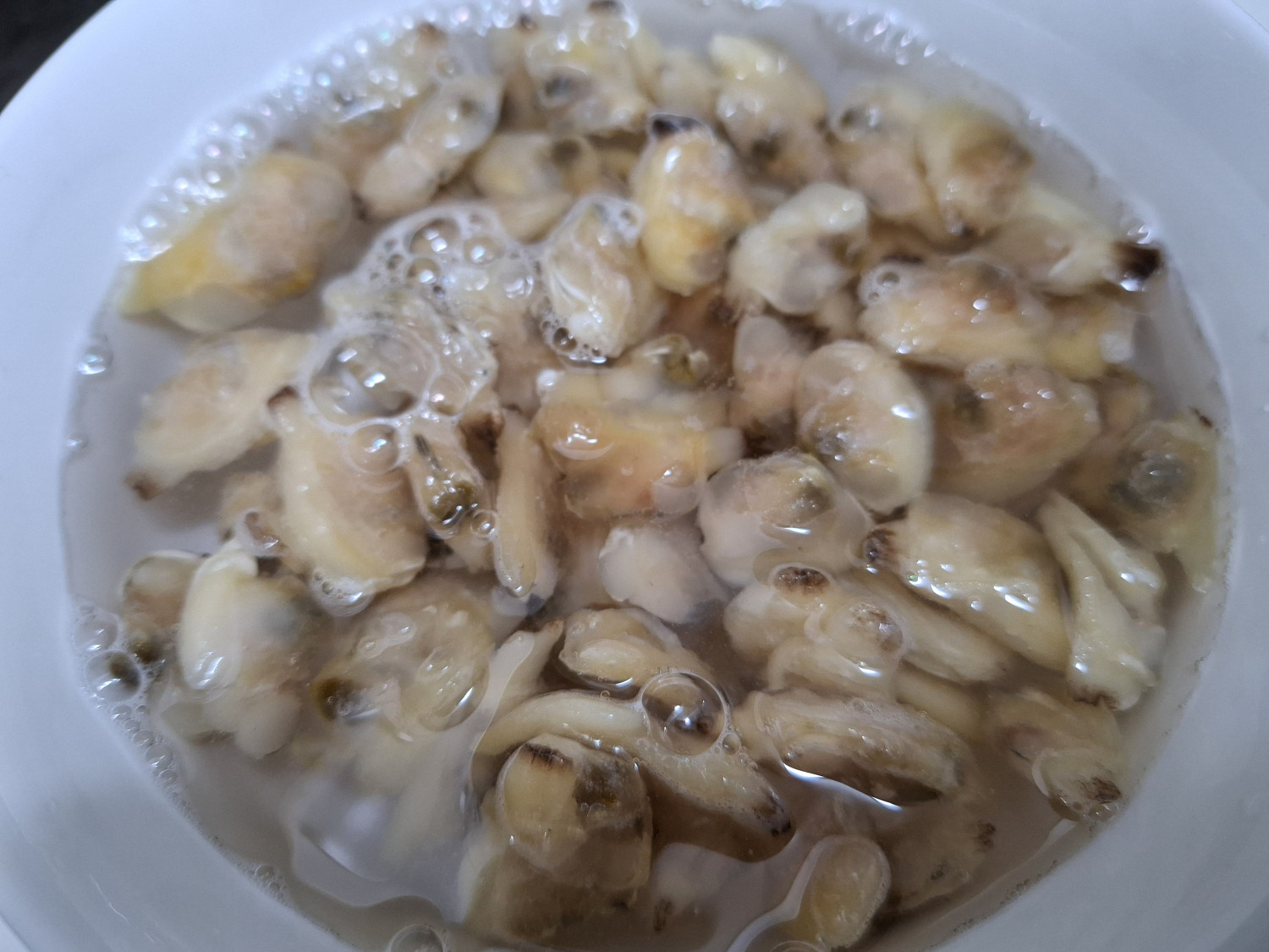 먼저 냉동된 바지락살은 찬물에 15분간 담가