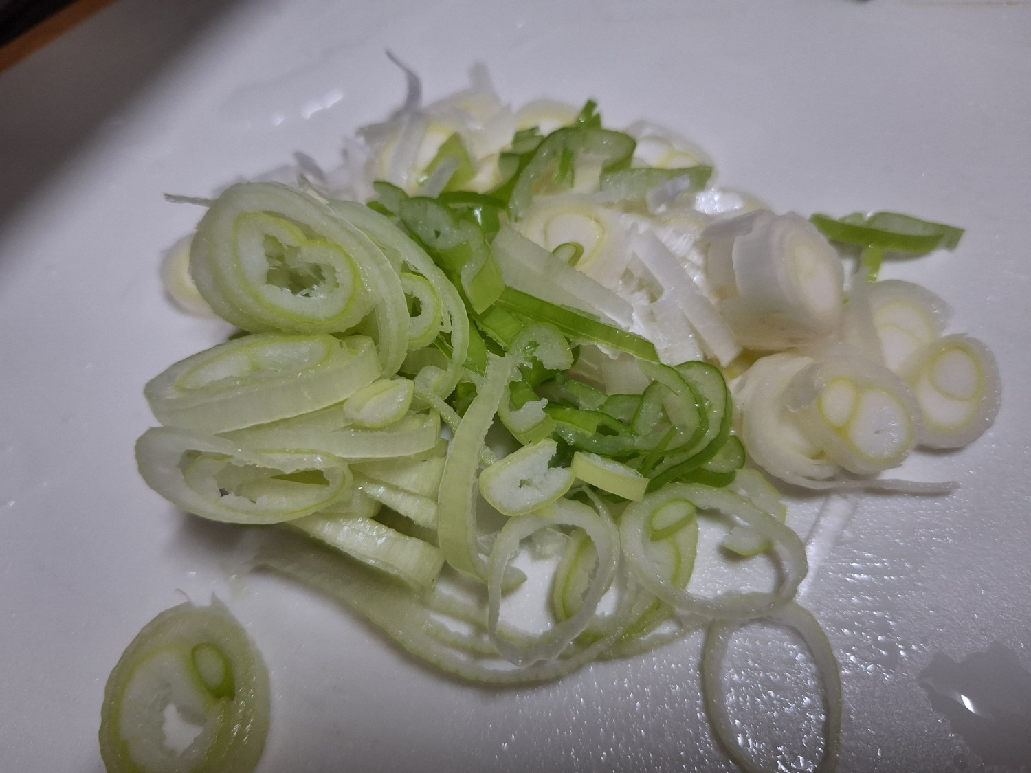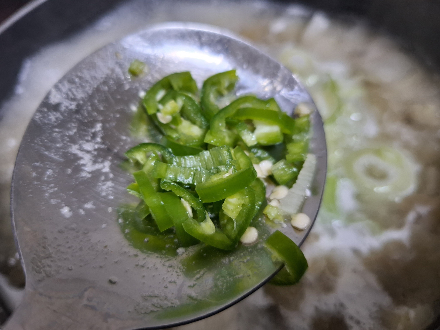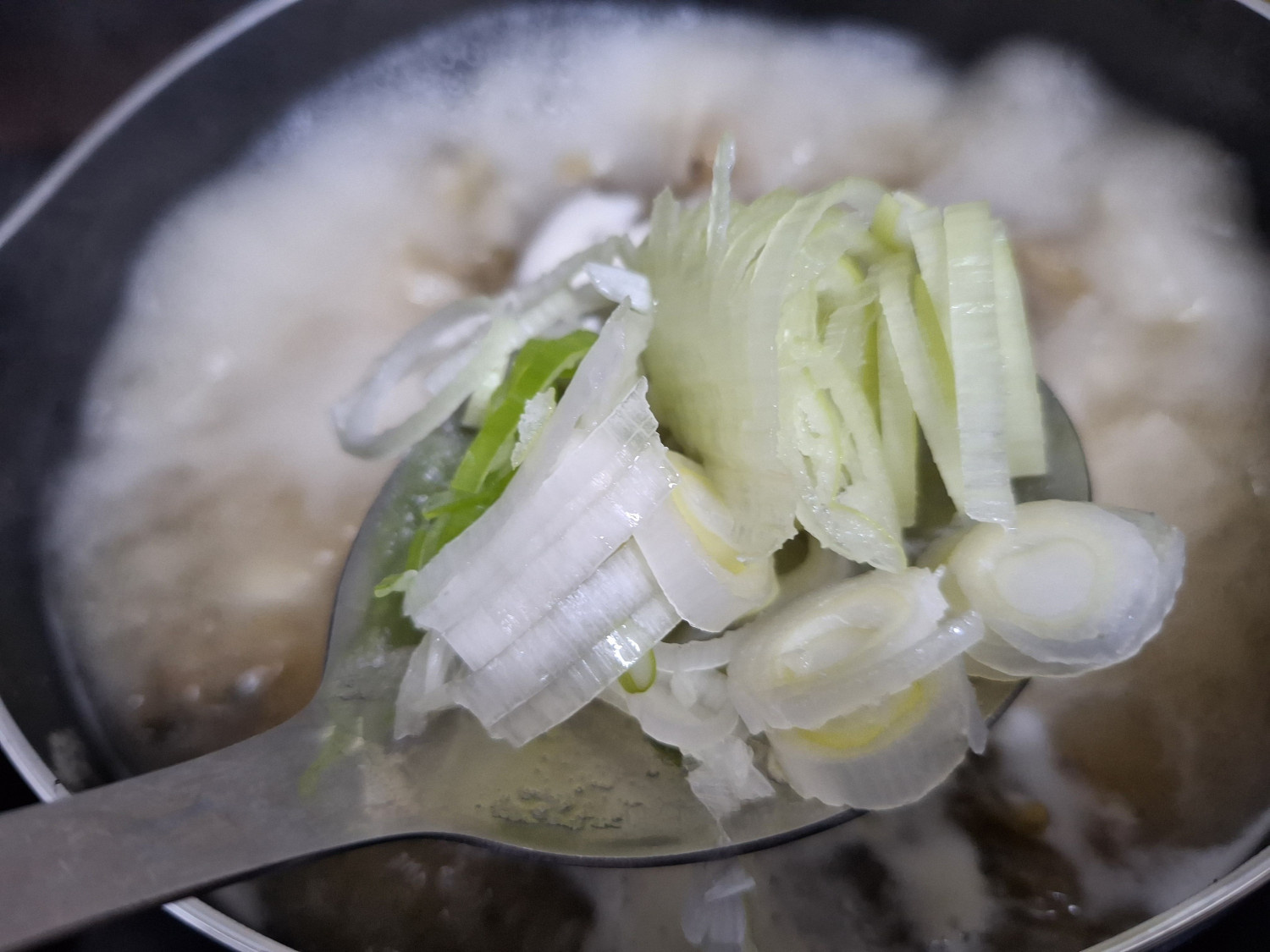 5분 후에 썰어둔 대파와 청양고추를 넣어준 후