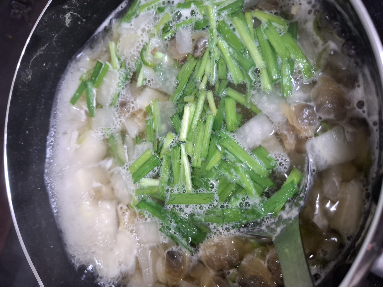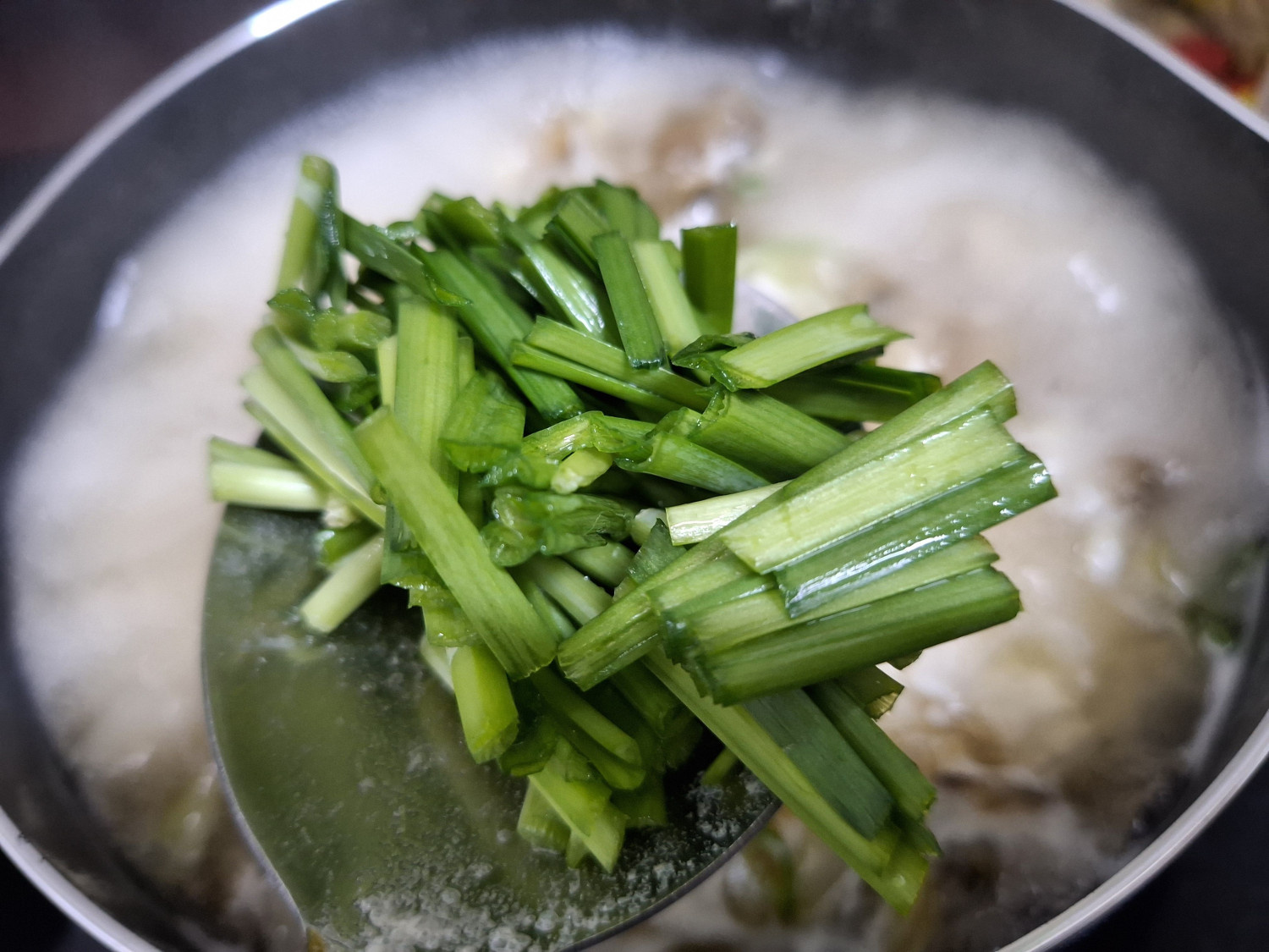 간을 맞춰줬으면 썰어둔 부추를 넣고 섞어서 30초만 끓인 후