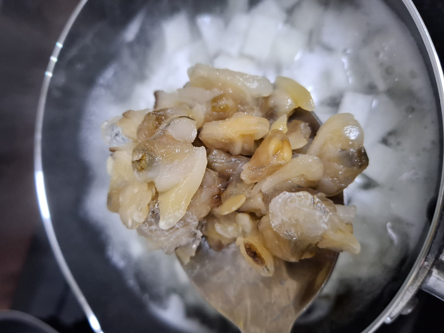 2분 후에 해동된 바지락살을 넣어줍니다.