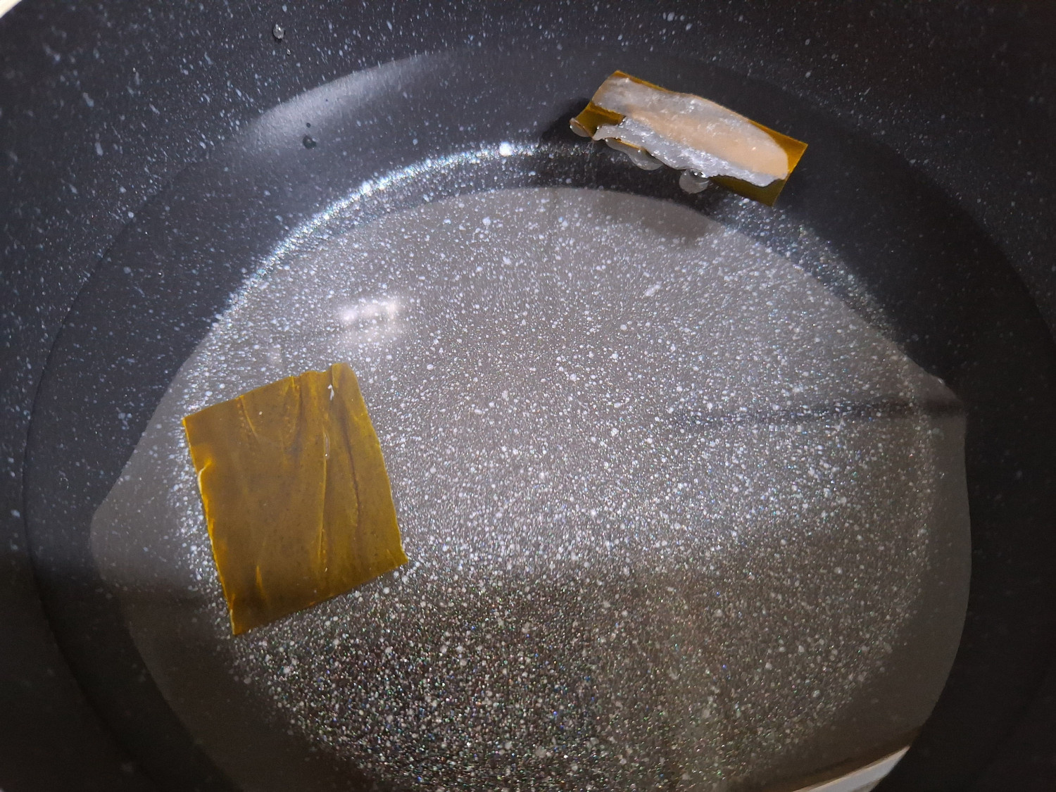 물 800 ml , 건다시마 2 장 , 국간장 1숟갈 , 참치액 1숟갈 , 다진마늘 1숟갈 , 맛소금 한꼬집