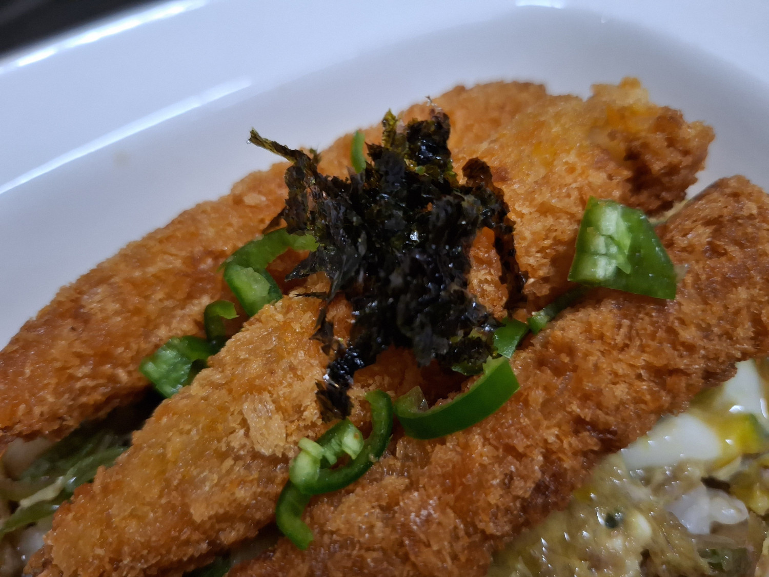 냉동새우튀김 3 마리 , 대파 40 g , 양파 1/4 개 , 청양고추 1/4 개 , 달걀 1 개 , 밥 한 그릇 , 김가루 2 g
