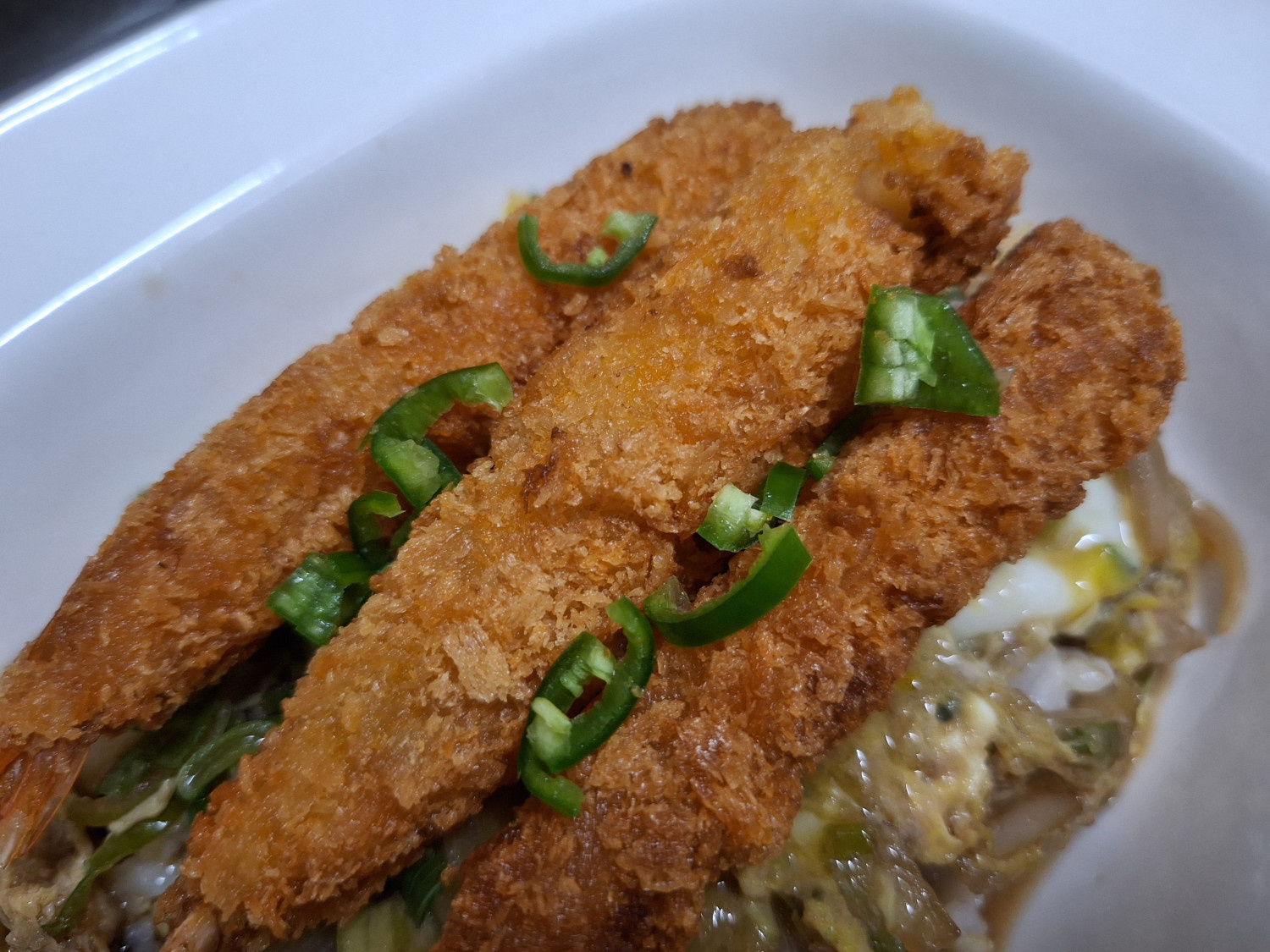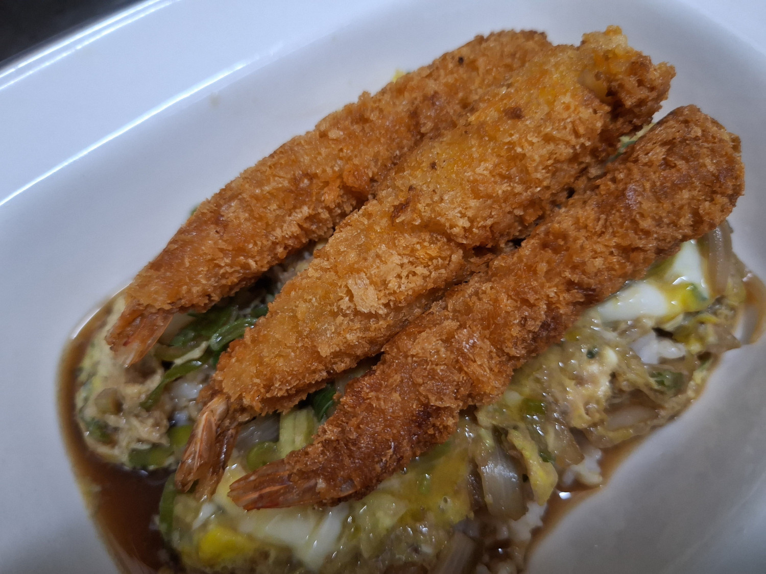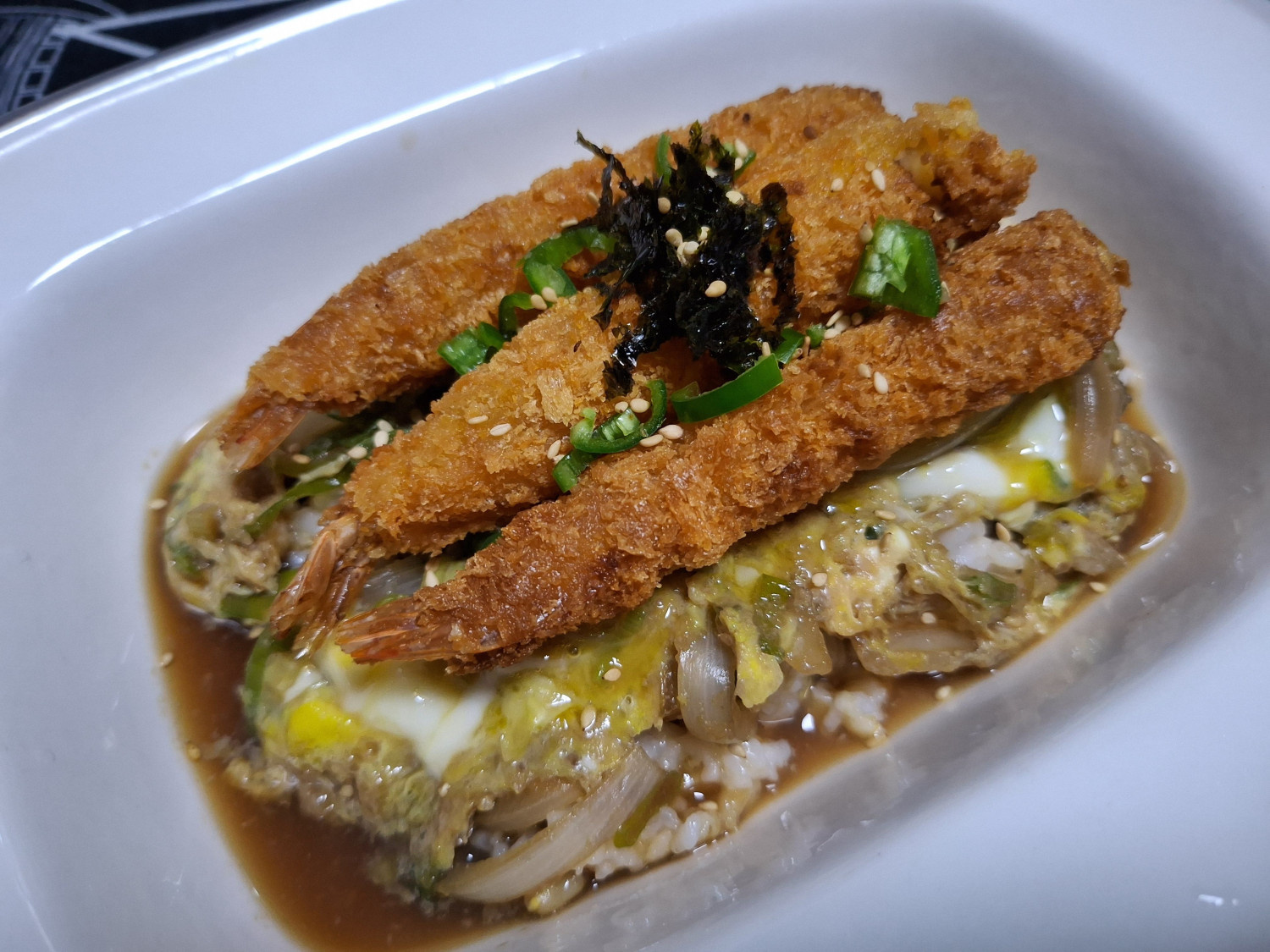 그 위에 미리 튀겨둔 새우튀김도 올려주세요.