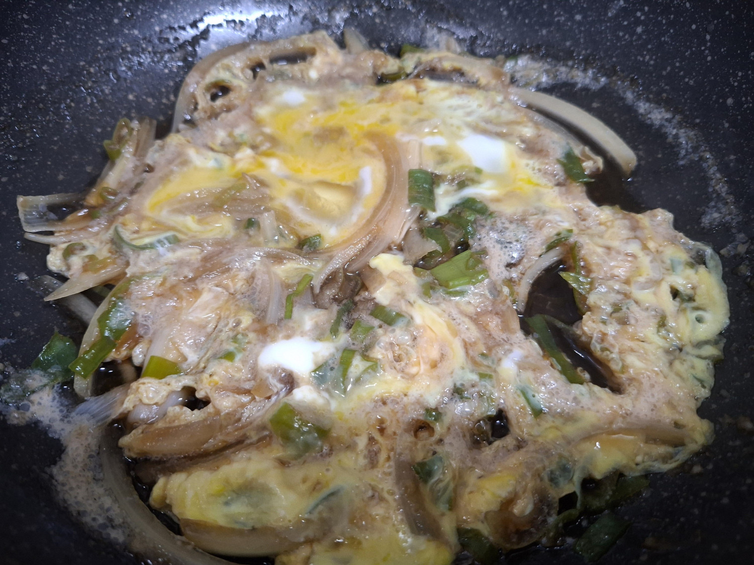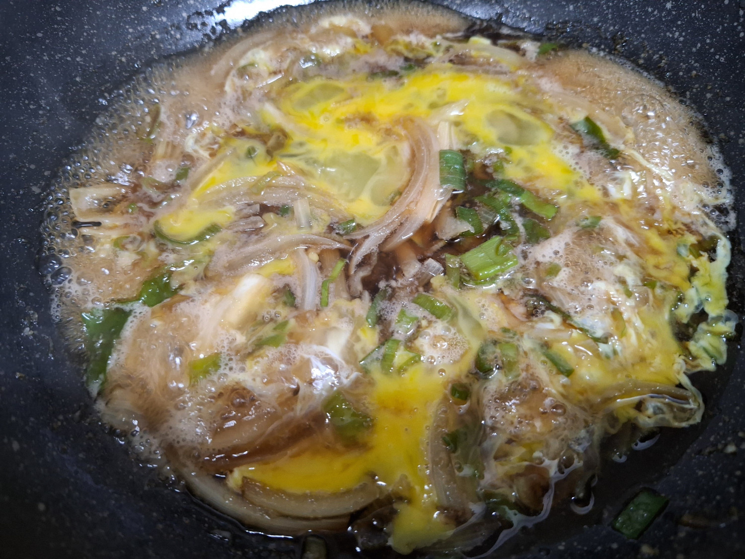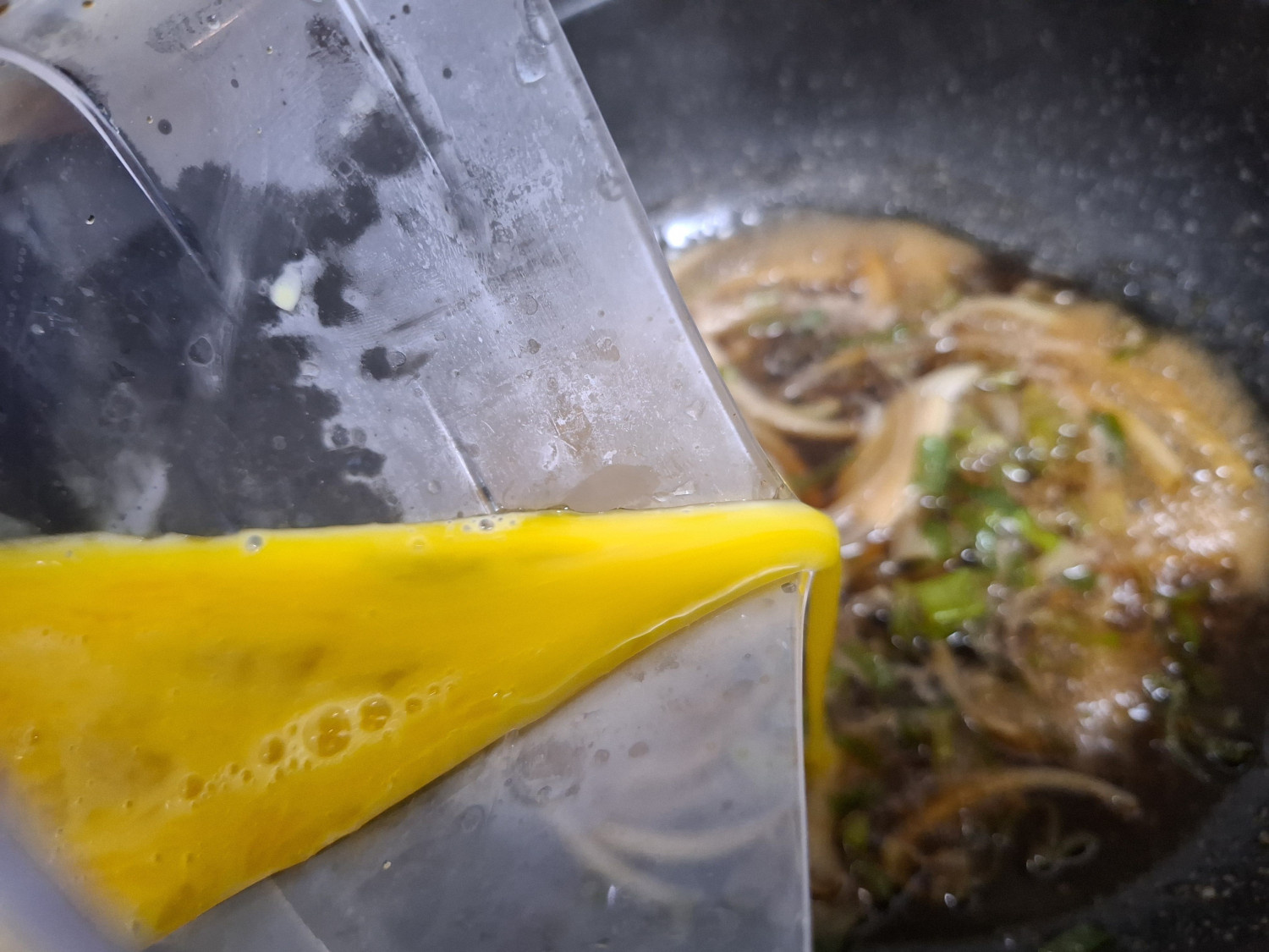 그리고 풀어둔 달걀을 부어주시는데요.