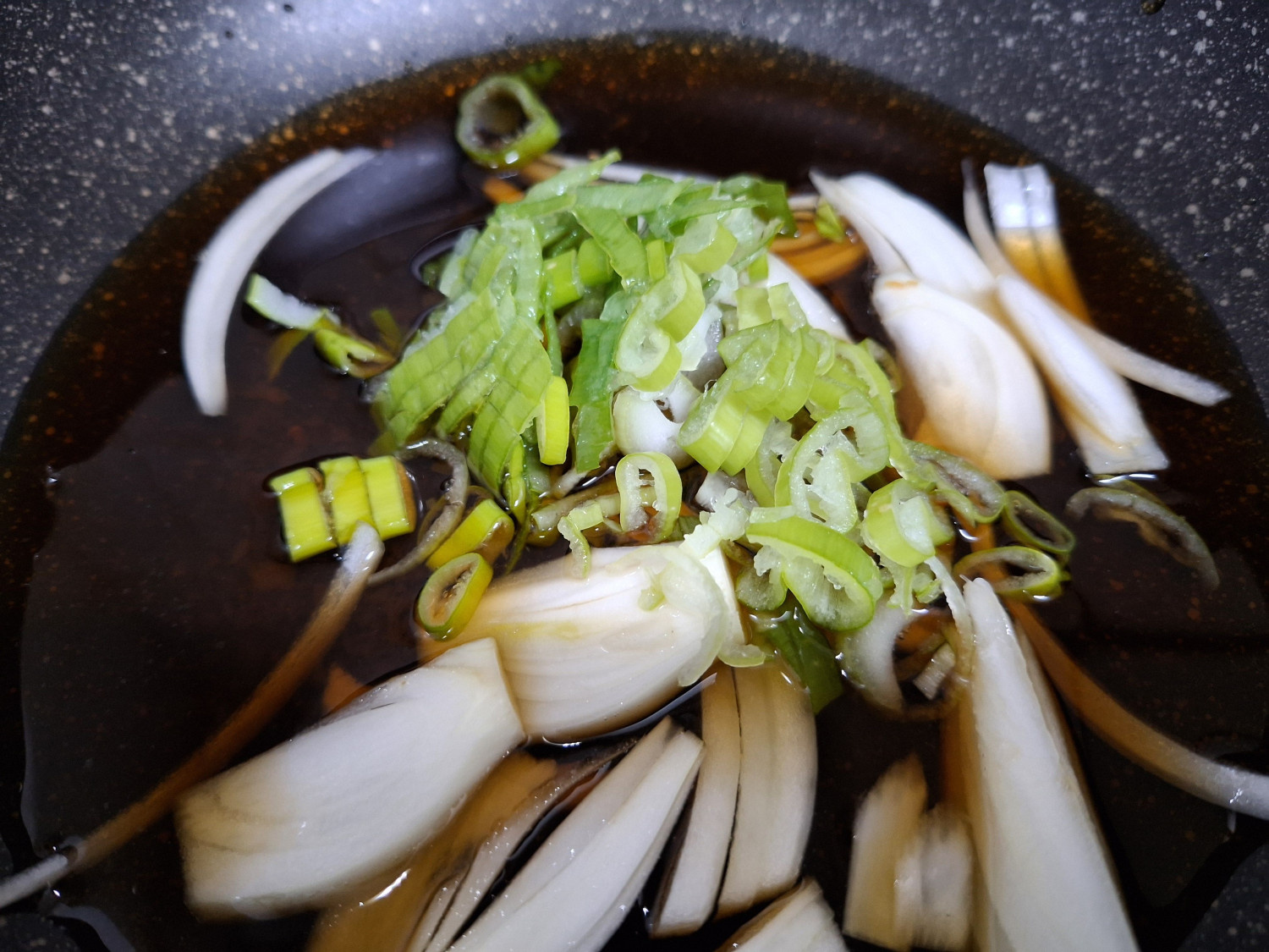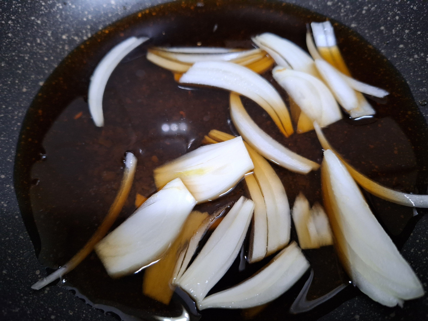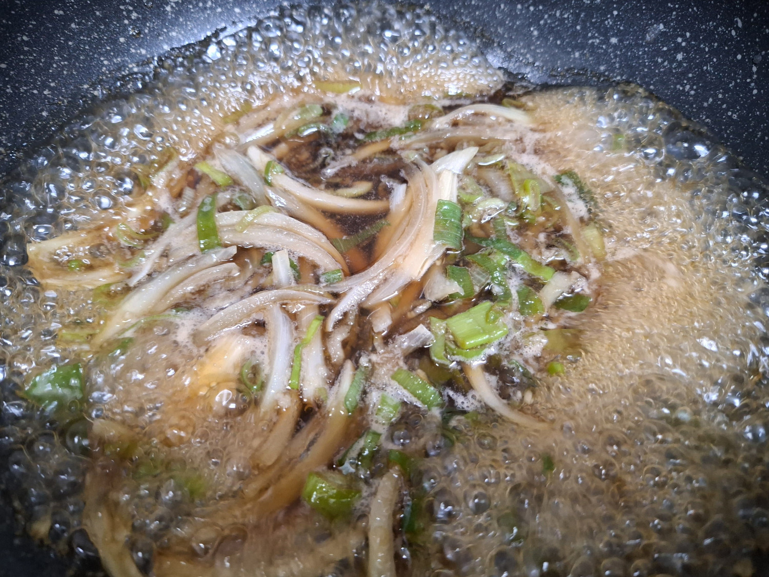 그때부터 4분 30초간 끓여 양파가 투명해질 때까지 기다려줍니다.