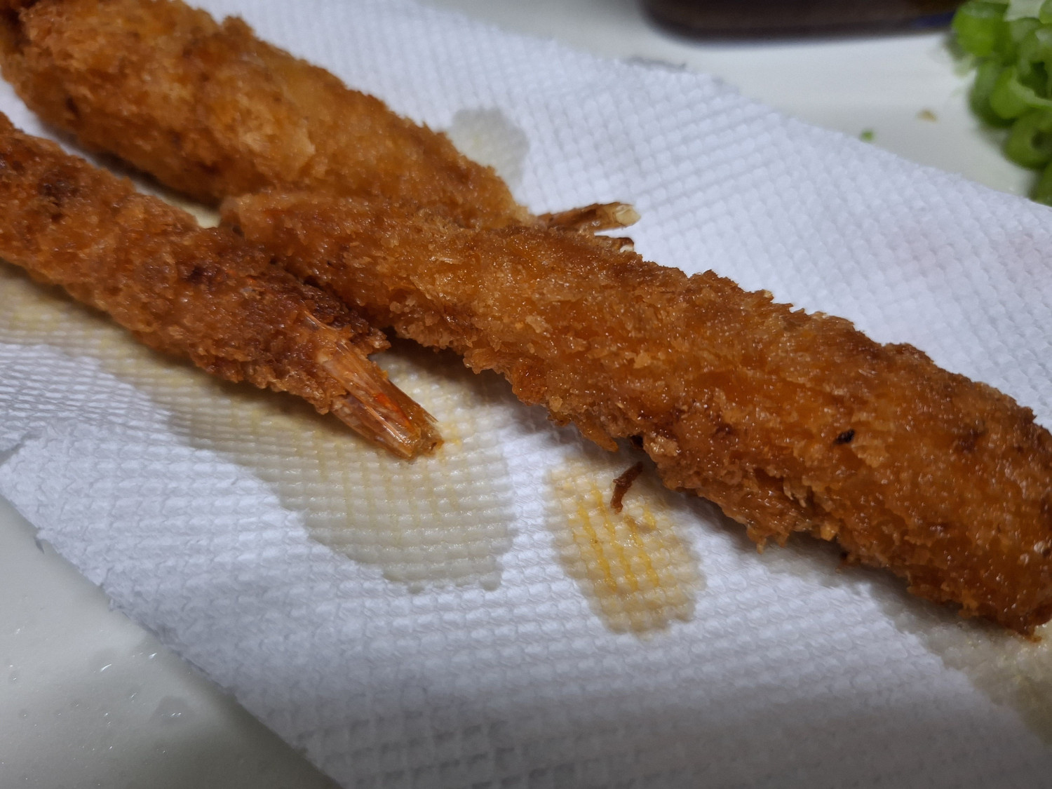 다 튀겨준 새우튀김은 잠시 빼내서 기름기를 빼주세요.