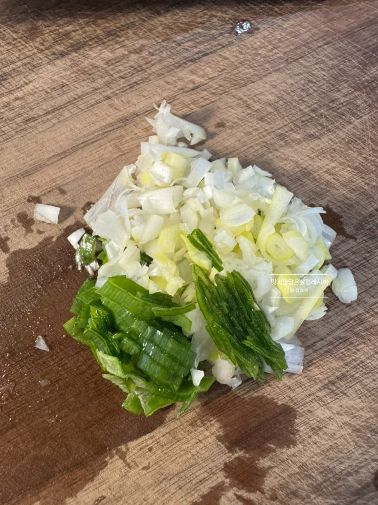 양념장에 넣을 대파 3~4큰술 가량 잘게 다져줍니다.