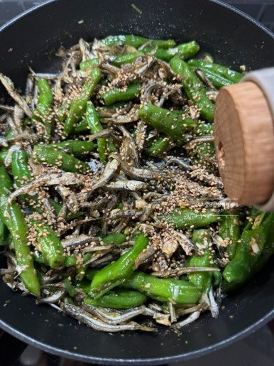 멸치는 잔멸치도 무방하지만 꽈리와 함께는 중멸치를 사용해 씹히는 맛 가득 살려주는 것이 더 맛있더라고요. 이는 취향이나 준비상황에 따라 자유롭게 선택해 주도록 합니다.