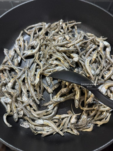 부드러운 식감 살릴 뿐 아니라 양념도 쏙쏙 잘 배도록 짧은 시간 가볍게 데쳐준 뒤 사용하고요. 멸치는 냉동 보관하였기 때문에 수분을 비롯한 비릿한 맛을 날려주기 위해 마른 팬에 고슬고슬하게 볶은 뒤 사용합니다.