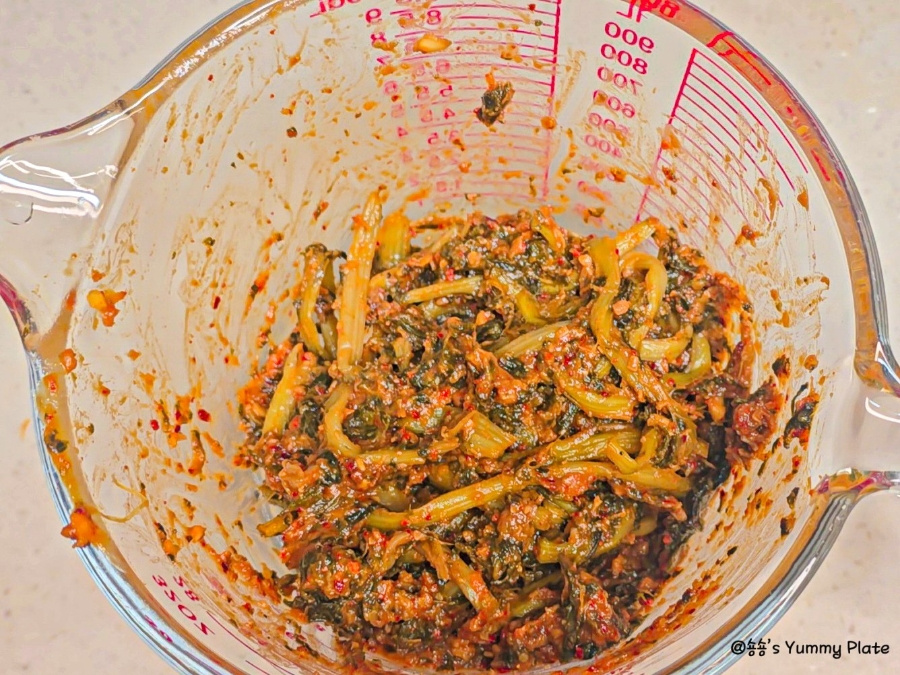 미리 양념을 버무려 두면 시래기에 간이 스며들어 끓일 때 훨씬 더 구수한 맛이 난답니다!