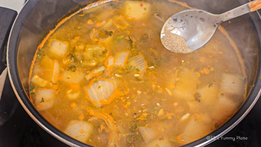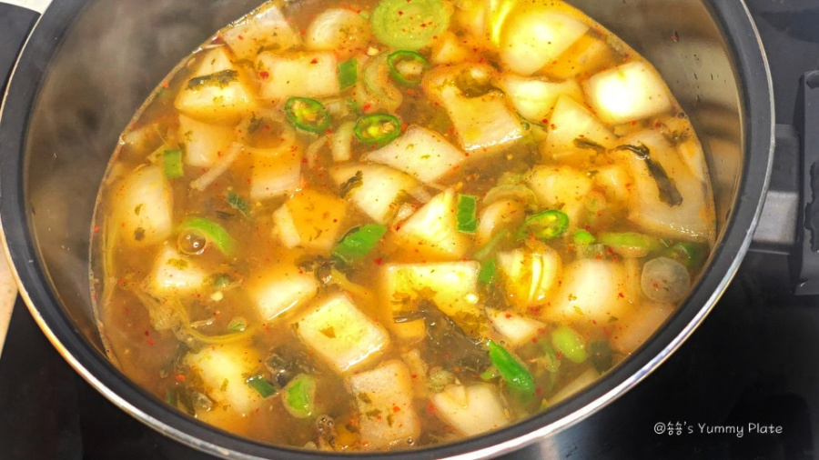 국물이 끓기 시작하면 불순물이 살짝 떠오르는데, 이때 거품을 수시로 걷어내면 국물이 훨씬 시원하고 깔끔해진답니다!
