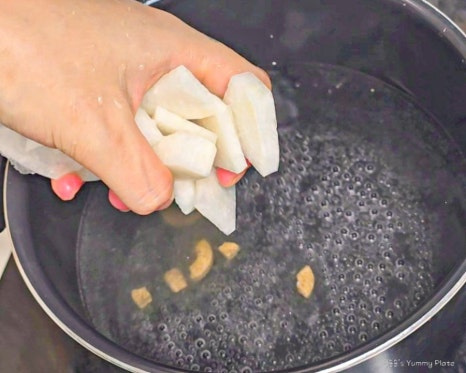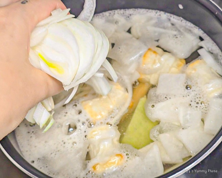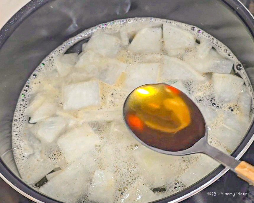 무를 먼저 넣고 끓여야 국물 맛이 훨씬 깊고 시원하게 우러난답니다!