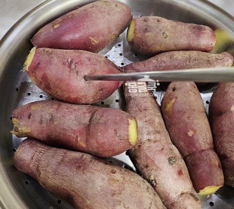 찐 고구마는 바로 꺼내 먹어도 좋지만, 김이 너무 뜨거울 땐 5분 정도만 살짝 두었다가 드세요.