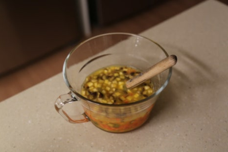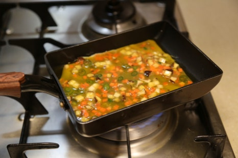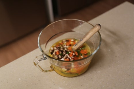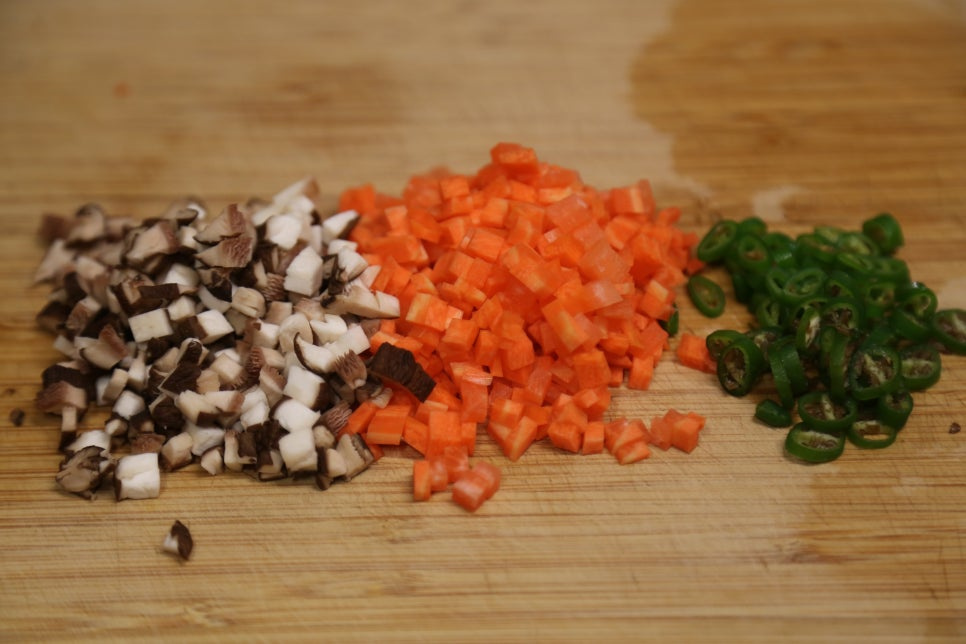 썰은 표고버섯 1개, 썰은 당근 1/5개, 썰은 청양고추 2개