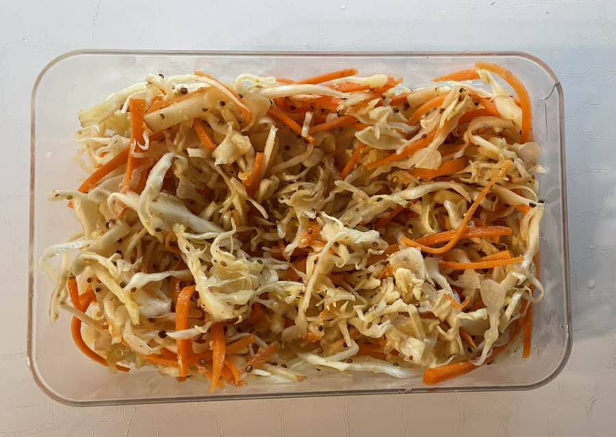 냉장고에 있는 오이를 먹고 싶어서 무슨 요리를 해야 하나 고민하다가 냉장고에 며칠 전에 만들어 먹고 남은 양배추 당근라페가 생각나더라구요.