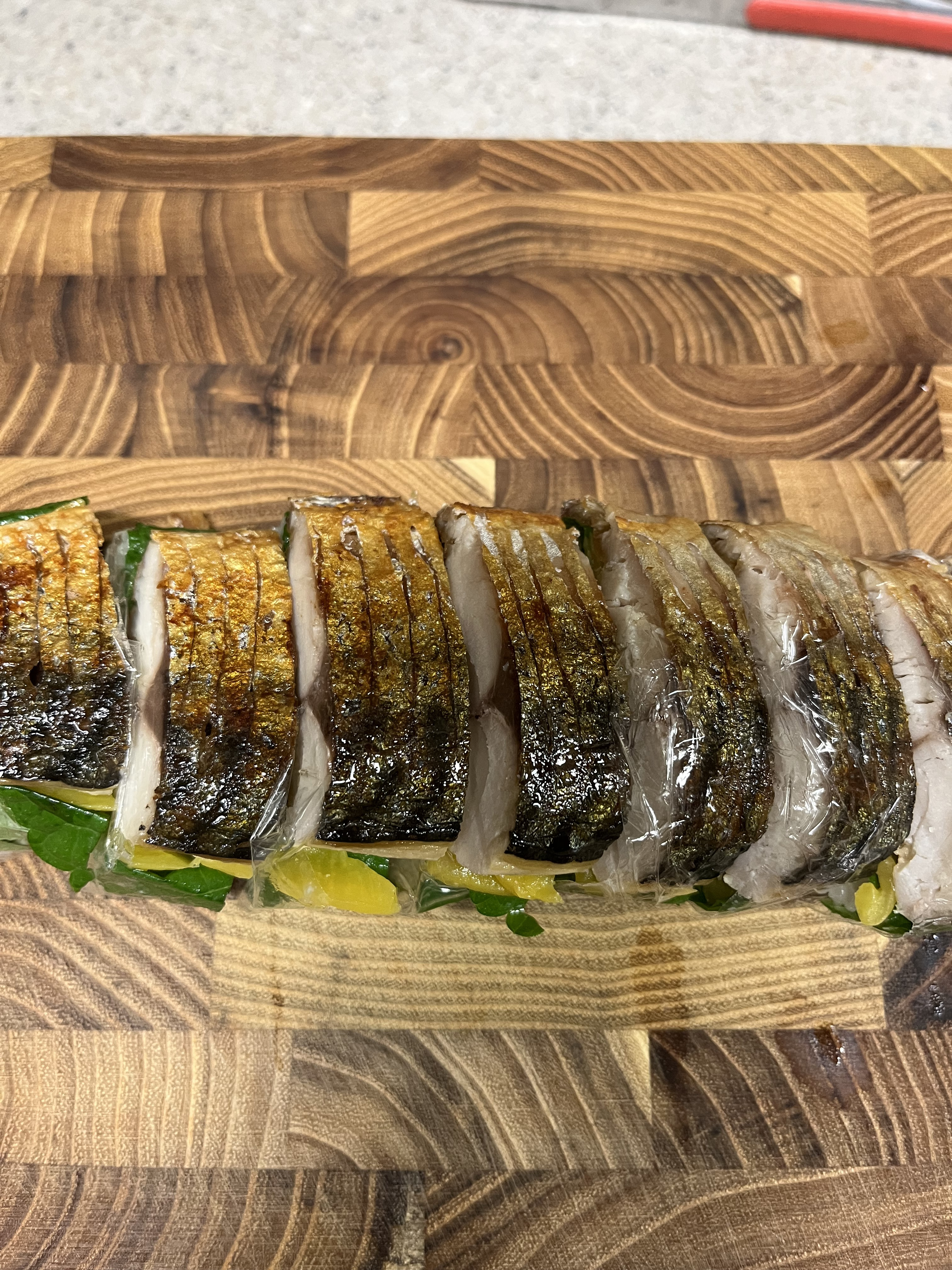 요즘 가시 제거한 순살 생선이 많이 나오더라구요. 그중 순살고등어를 구워 묵은지와 깻잎을 넣어 초밥을 만들었어요.